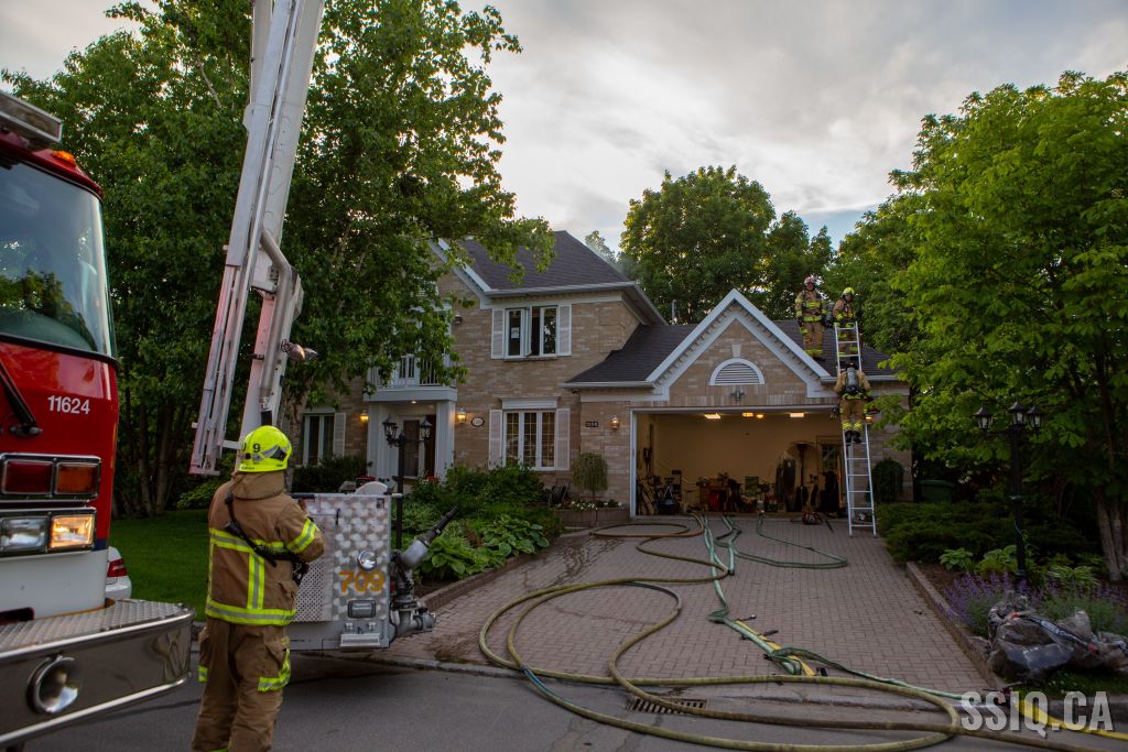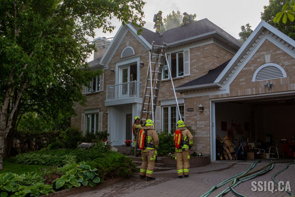 Une attaque est alors faite à l'intérieur pour rabattre les flammes. Le feu semble cependant avoir fait son chemin, par la structure, vers le 2e étage et l'entretoit. Des vérifications sont faites et des indices laissent croire que les flammes se sont propagées dans l'entretoit. Les conditions de fumée de détériorent, l'intervention monte alors en 2e alarme.