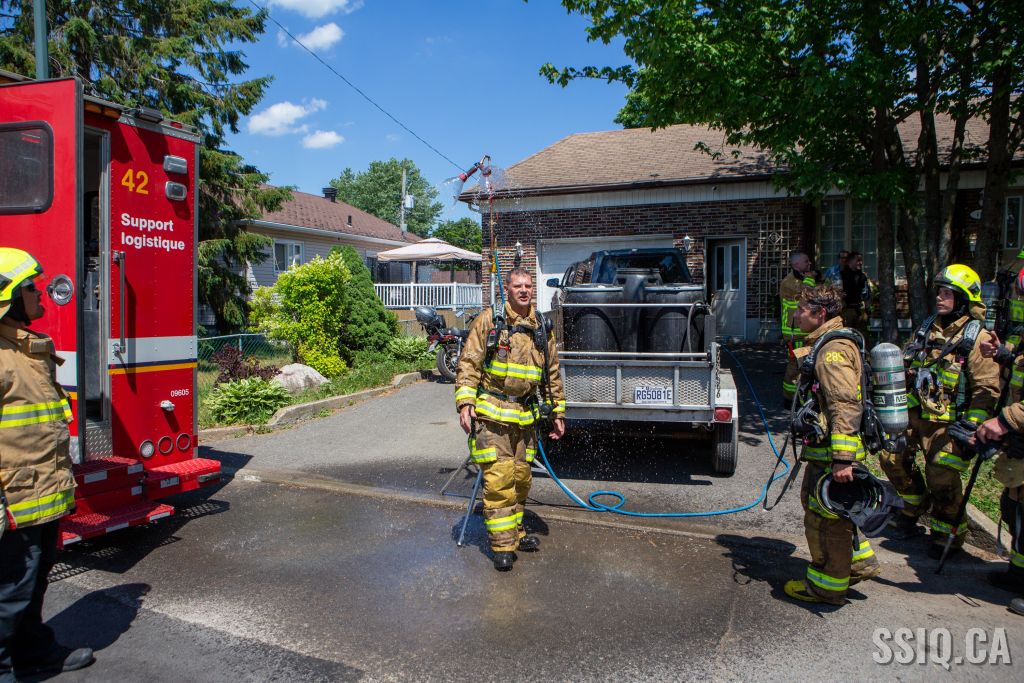 Cet après-midi, sous un soleil de plomb, les pompiers sont intervenus pour un incendie nécessitant 2 alarmes au 121 Place Bonnard, dans l'arrondissement Beauport.