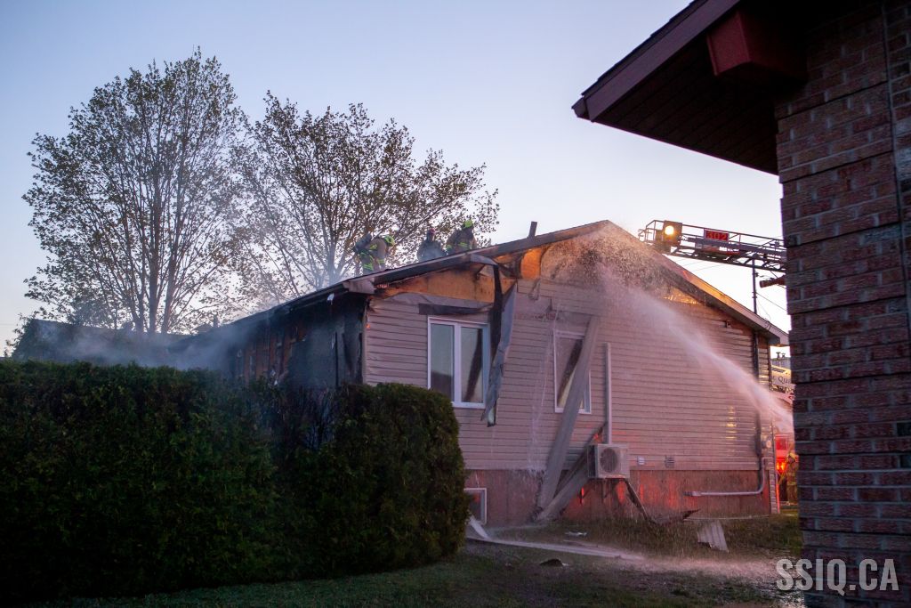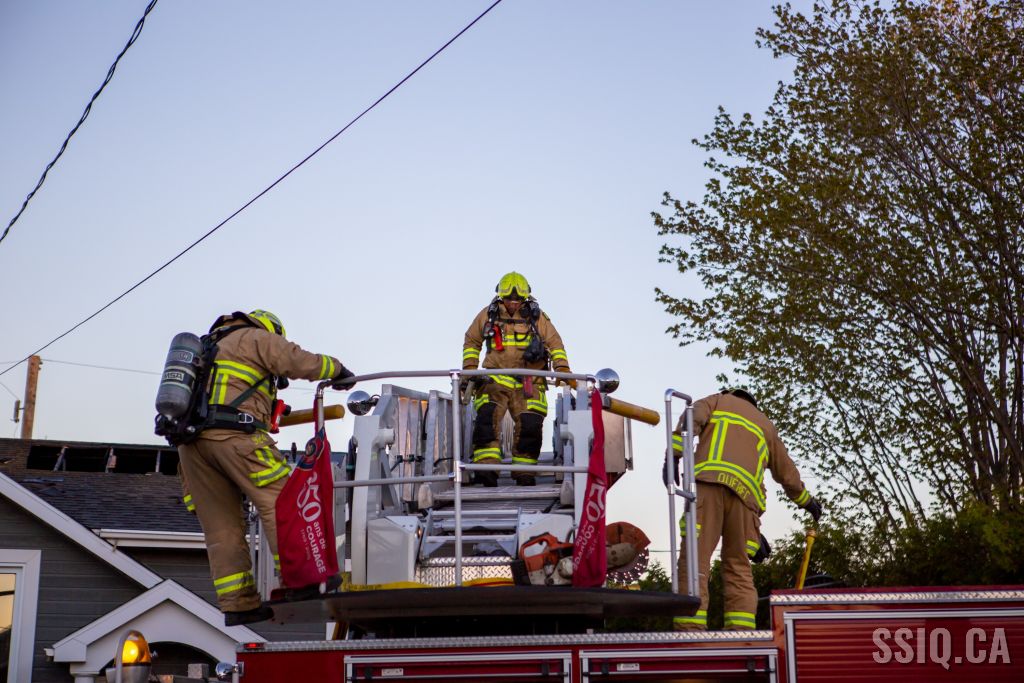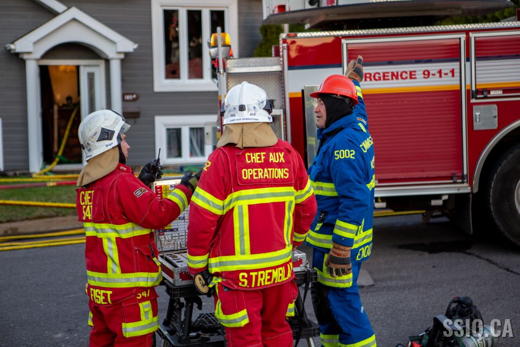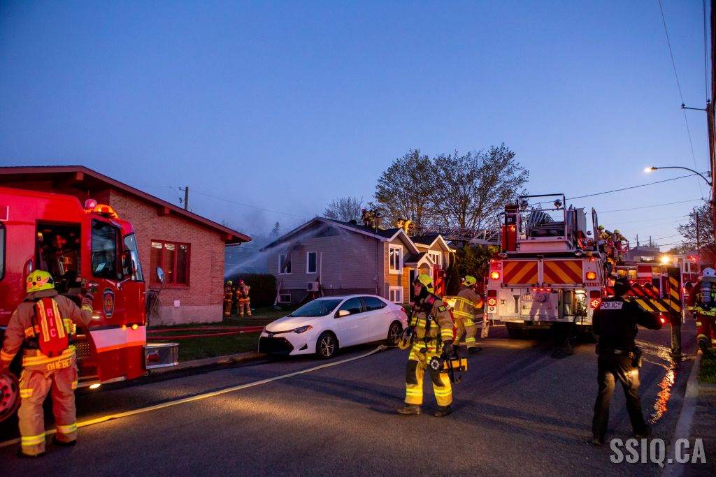 Avec ces détails, et alors qu'il est en route vers l'intervention, le chef Fiset (133) confirme que l'intervention sera nécessaire. Arrivé sur les lieux, l'officier du 217 demande de compléter la 2e alarme. Le feu fait rage à l'arrière de la maison et se propage au toit.