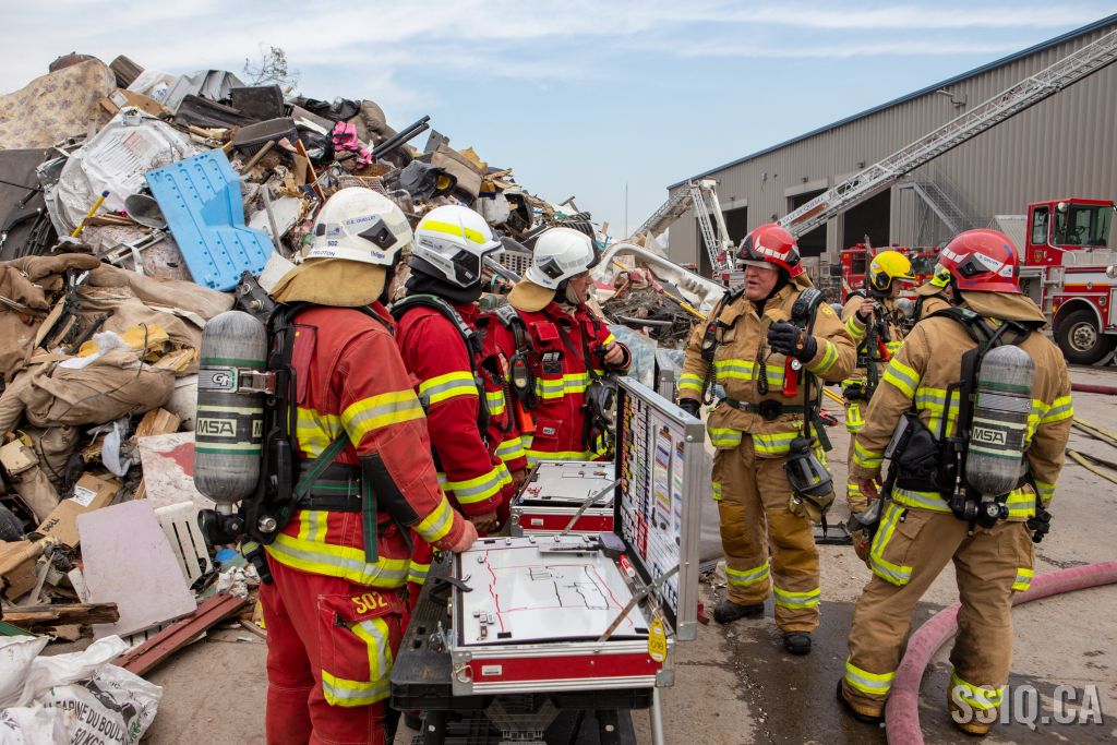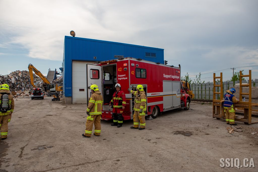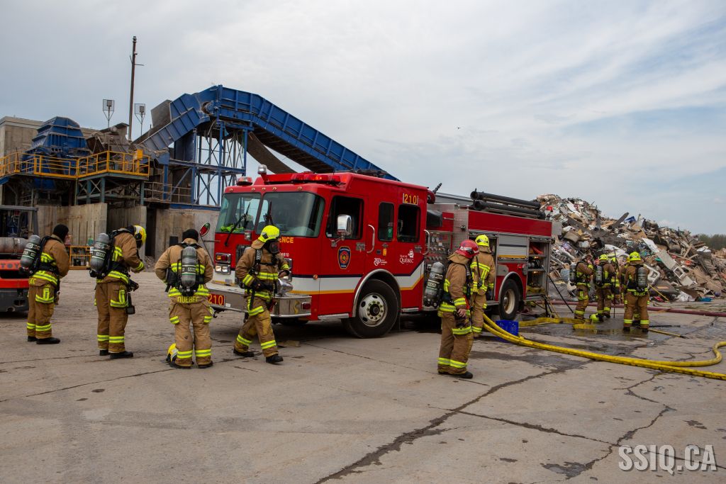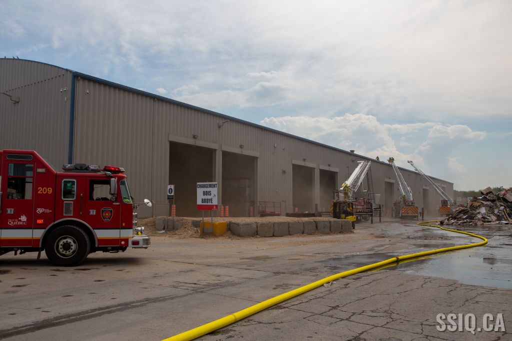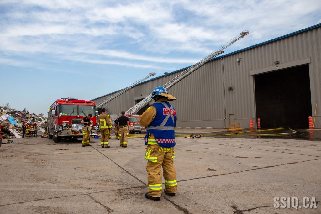 L'appel à la centrale 911 provient d'un employé de AIM Éco-Centre, les détails font mention d'un feu dans un convoyeur, dans un entrepôt de matériaux secs.