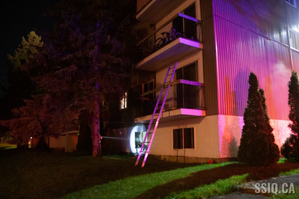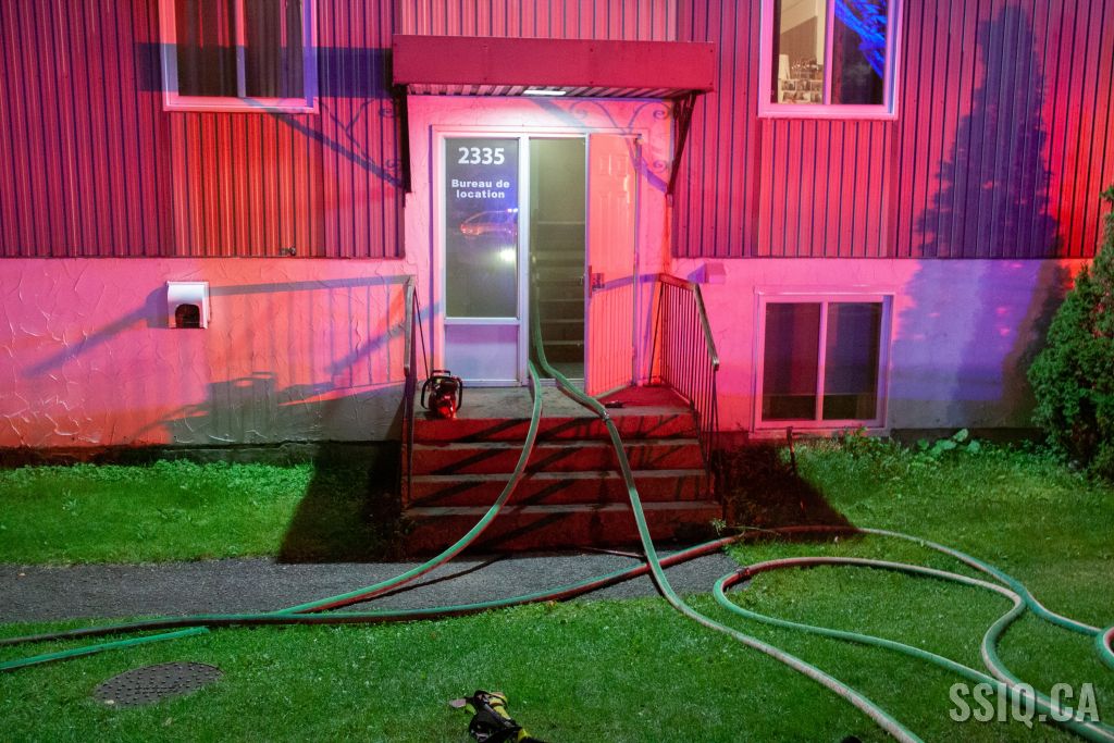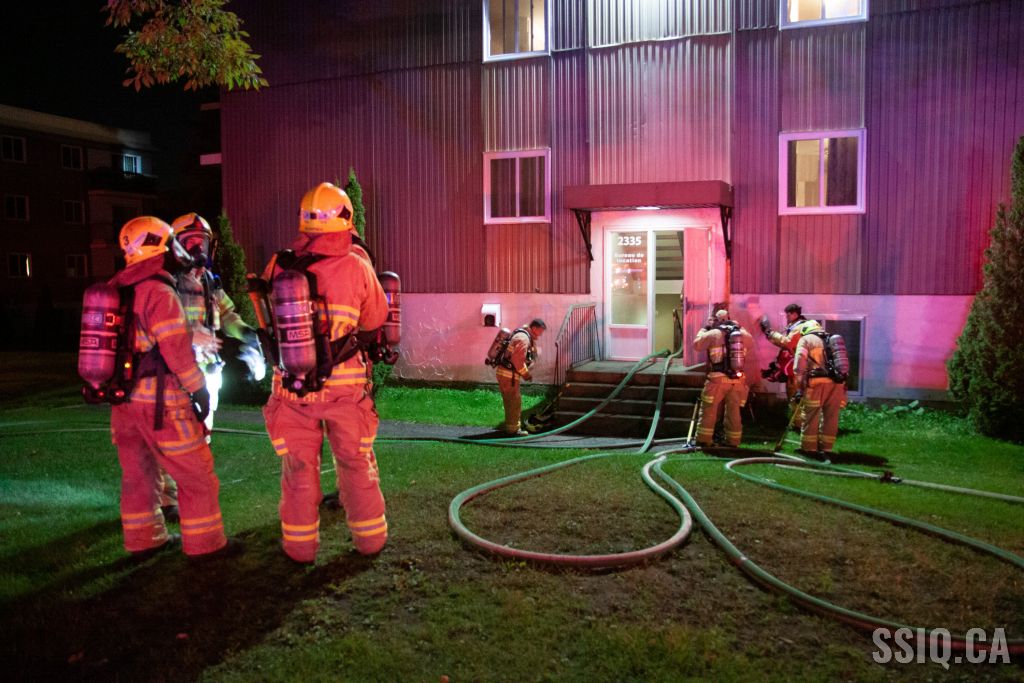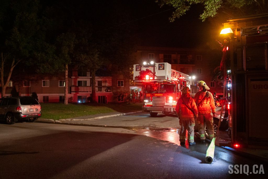 Cette nuit, les pompiers sont intervenus pour un incendie dans un immeuble locatif de 4 étages et de 45 logements au 2335 rue des Meuniers dans l'arrondissement Les Rivières.