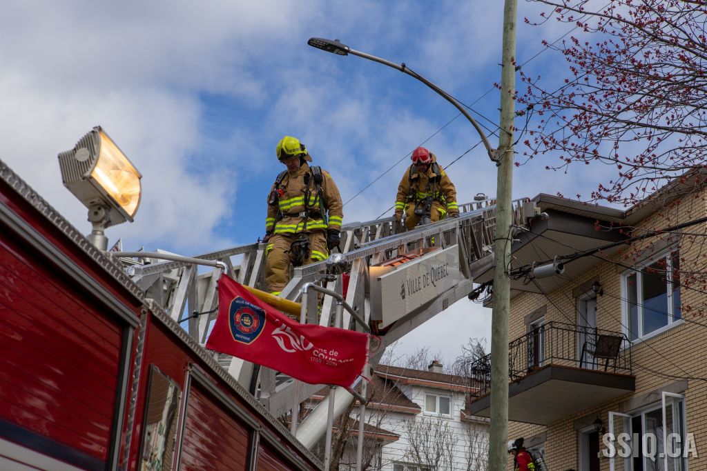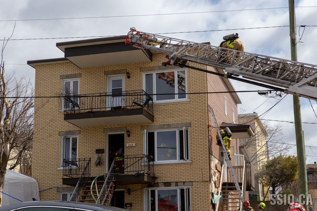 L'appel est logé à la centrale 911 par un résident de l'endroit. Les détails font mention d'un feu à l'extérieur d'un immeuble, et que les flammes se propagent au parement extérieur.