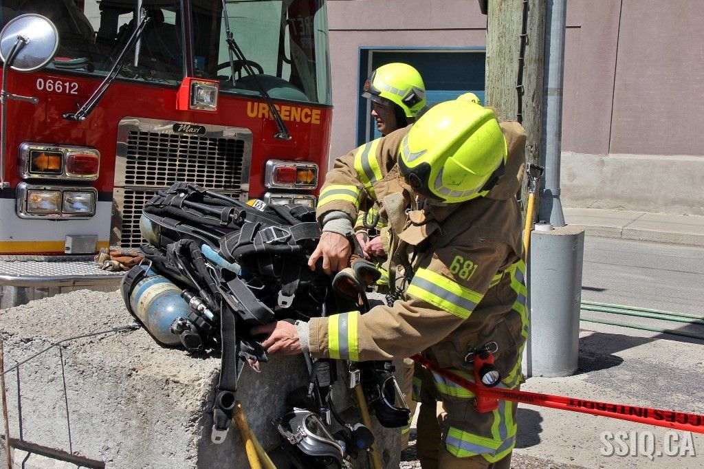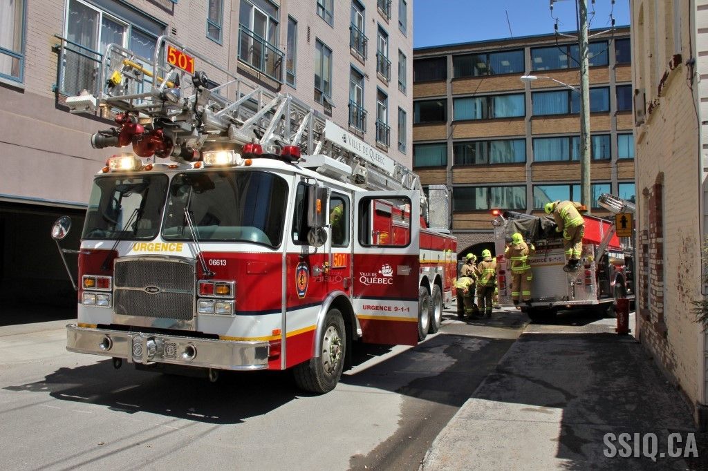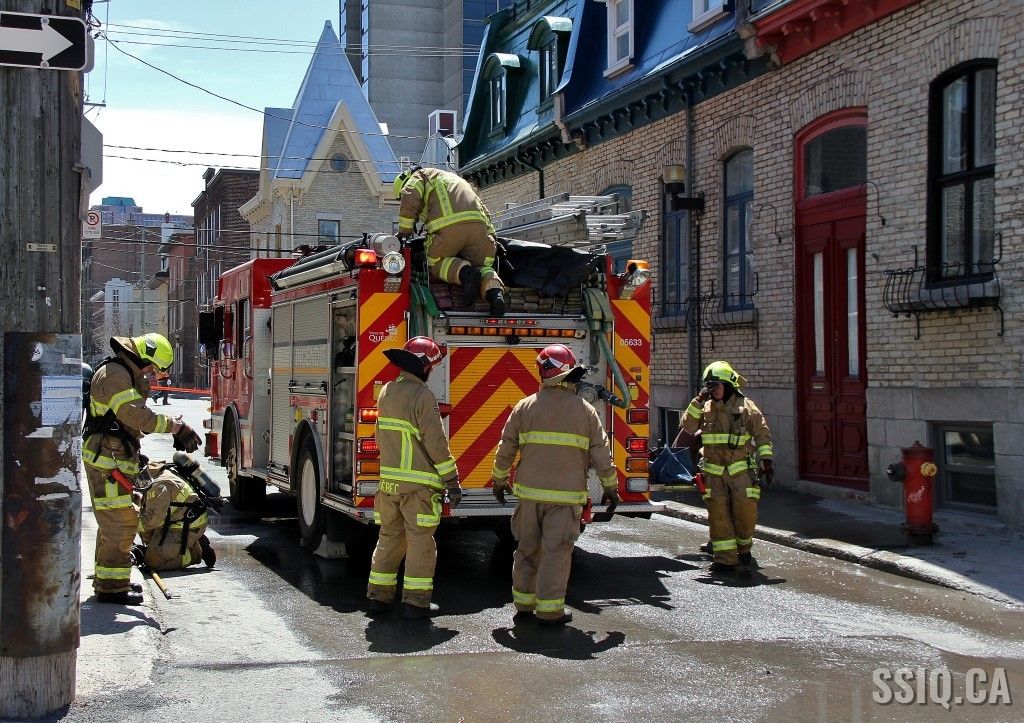 Plusieurs appels indiquent un feu éclaté sur la toiture. En fait, il s'agit d'une terrasse aménagée sur le toit de l'édifice du 274, rue du Parvis.