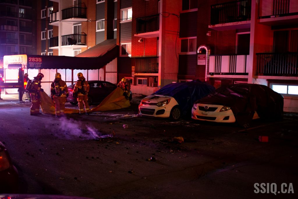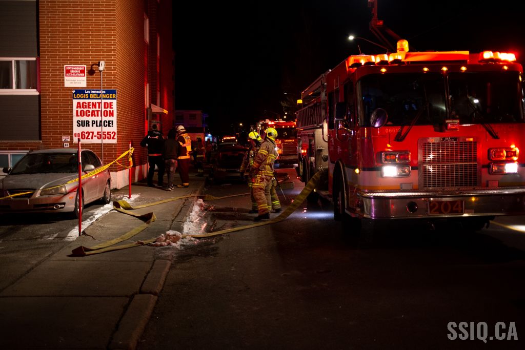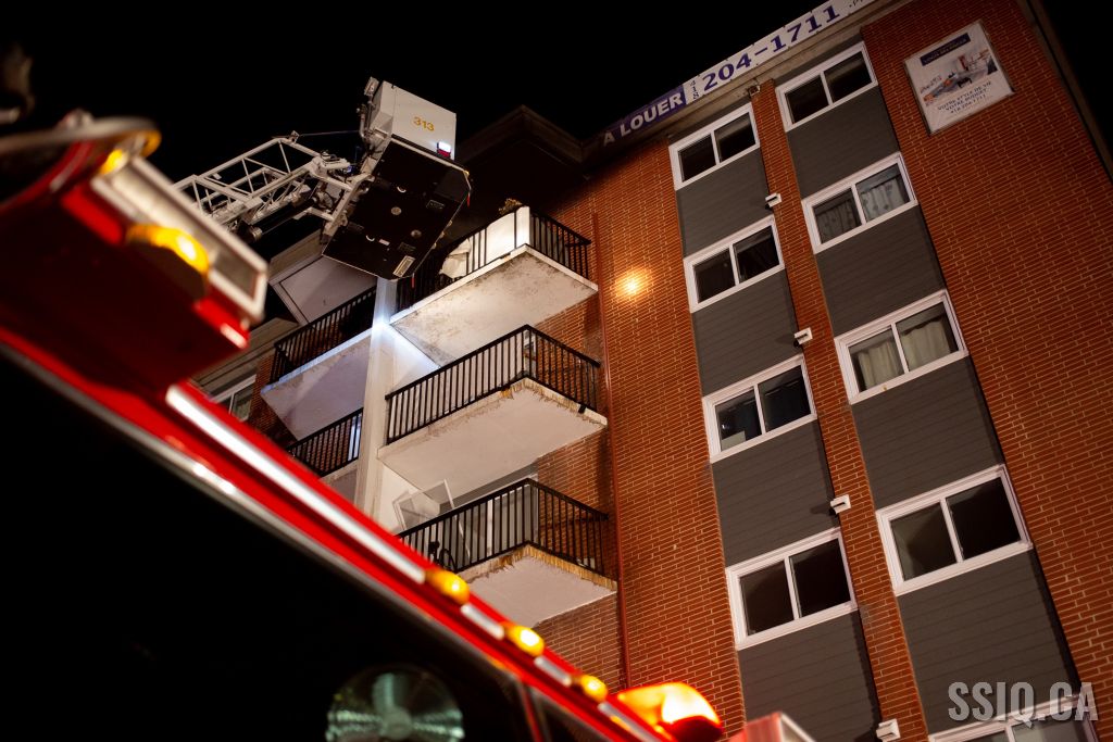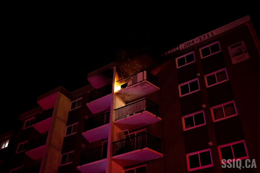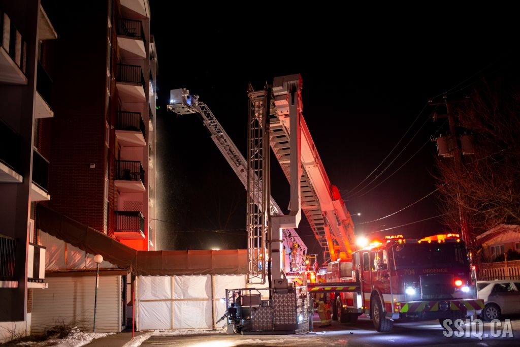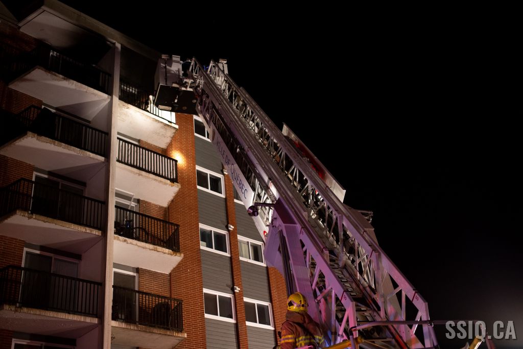 Cette nuit, les pompiers sont intervenus pour un incendie nécessitant 2 alarmes, dans un immeuble locatif de grande hauteur, au 2835 rue de la Concorde de l'arrondissement La Cité-Limoilou.