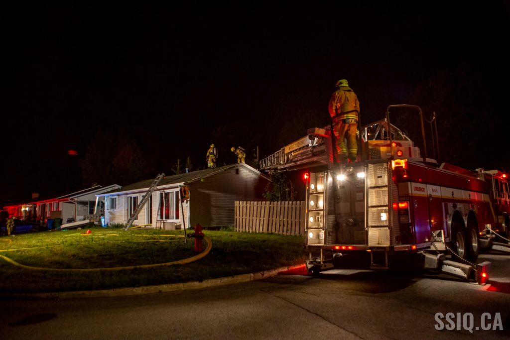 Cette nuit, les pompiers ont eu à intervenir pour un incendie de véhicule avec propagation à deux résidences au 3426 et 3430 Carré des Charmes, dans l'arrondissement Charlesbourg.
