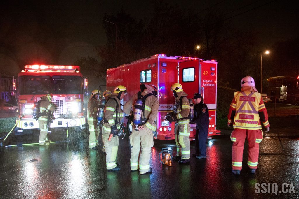 Deux appels ont été reçus à la centrale 911 pour signaler l'incendie. Les détails font mention de flammes visibles à l'arrière de la résidence, avec propagation à la maison. Les policiers qui sont à proximité confirment les flammes visibles. Alors qu'il est en direction de l'intervention, le chef Bolduc (113) demandera à la centrale de compléter la répartition pour une intervention nécessaire.