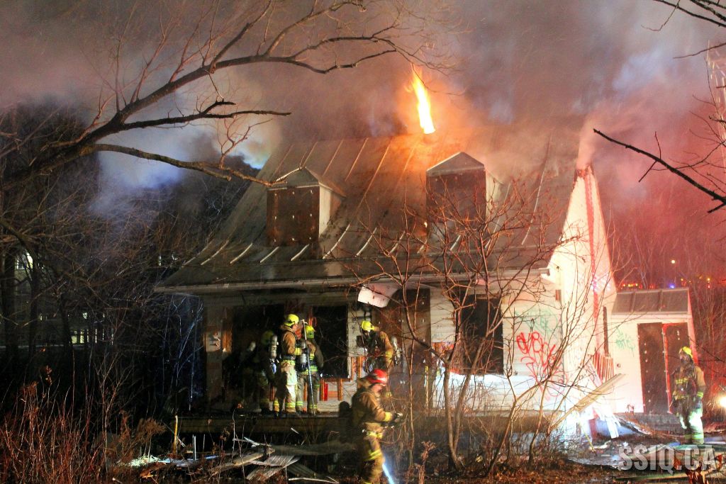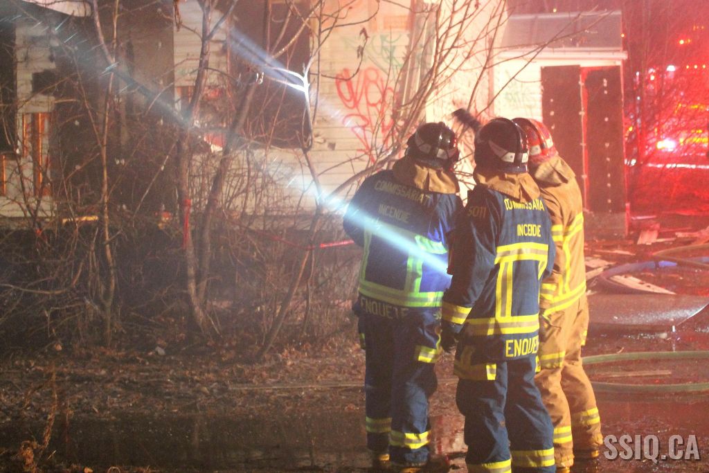 Les recherches dans le secteur dirigent les équipes vers un bâtiment abandonné en retrait du Chemin Saint-Louis. Alors que l'équipe du 215 est en approche, l'officier déclare l'intervention nécessaire, le feu est éclaté dans un bâtiment abandonné. Rapidement l'intervention monte alors en 2e alarme par précaution afin d'acheminer les ressources nécessaires.