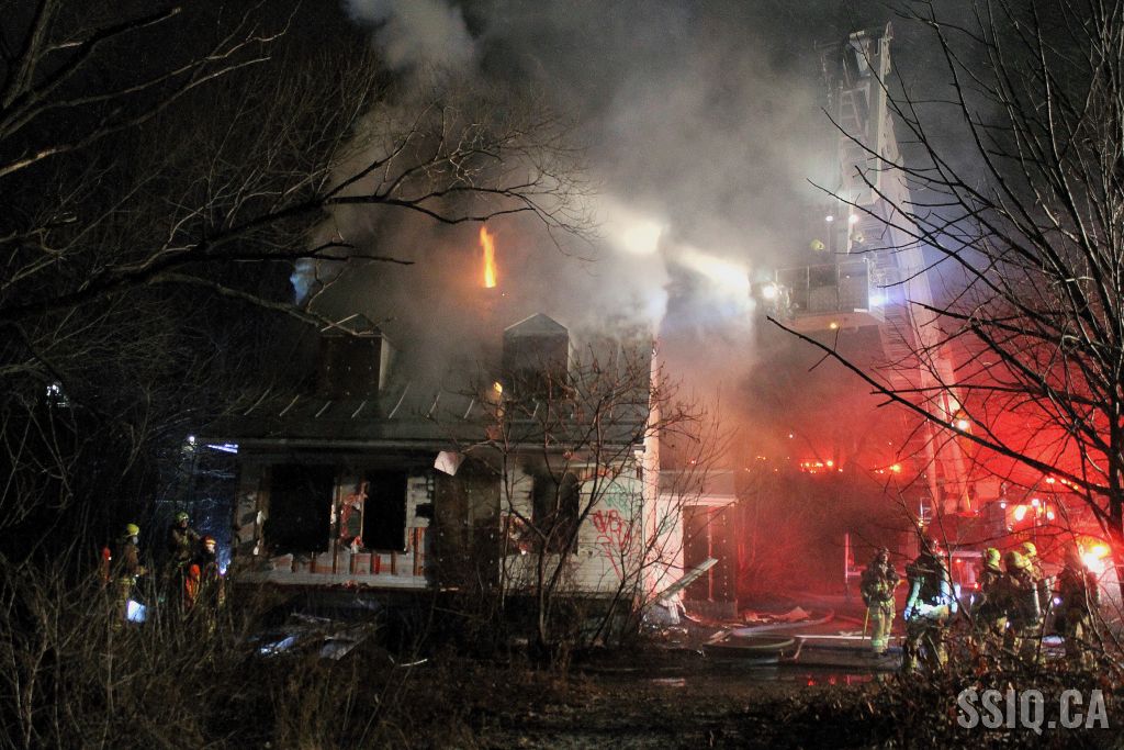 Cette nuit, les pompiers ont combattu un incendie nécessitant 2 alarmes dans un bâtiment abandonné derrière le 2285 Chemin Saint-Louis, dans l'arrondissement Sainte-Foy-Sillery-Cap-Rouge.