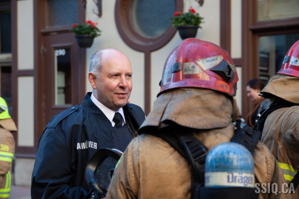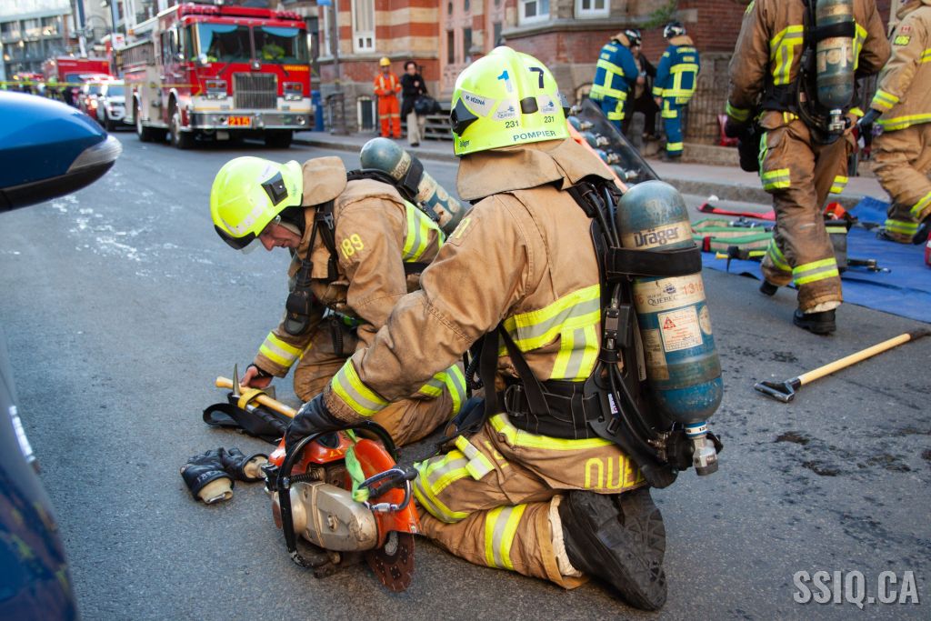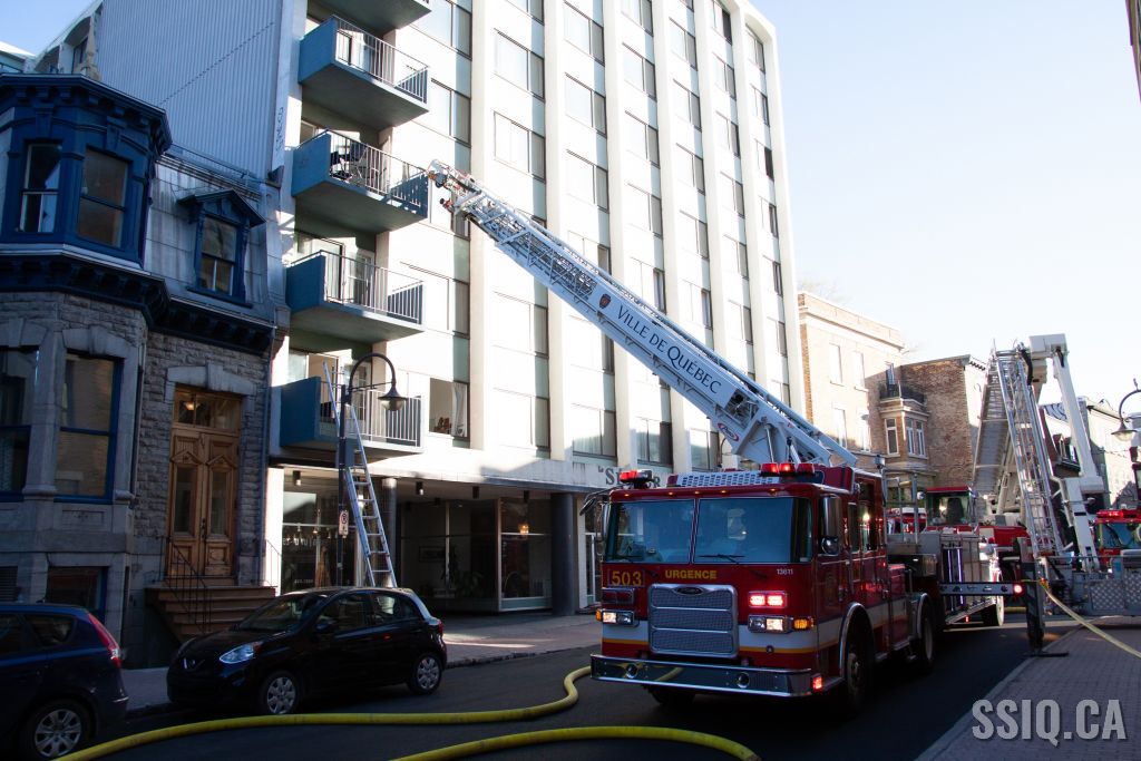Intervention majeure pour les pompiers de Québec, en début de soirée, pour un incendie dans un immeuble à logements de grande hauteur de la rue Saint-Jean.