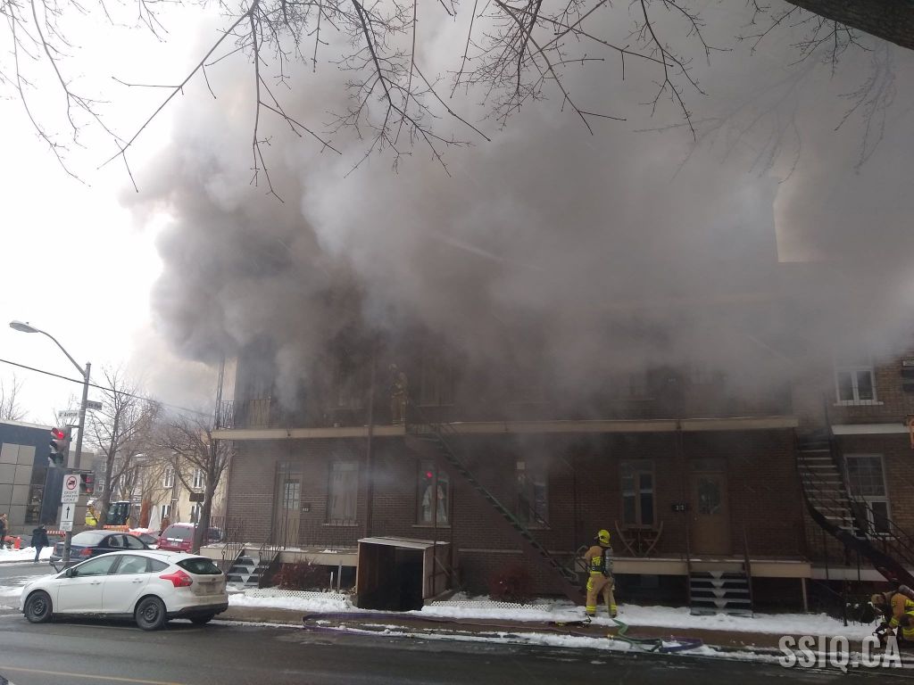 Plusieurs appels sont logés à la centrale 911 pour signaler l'incendie. Les témoins font mention de fumée noire sortant d'un immeuble locatif de 3 étages.