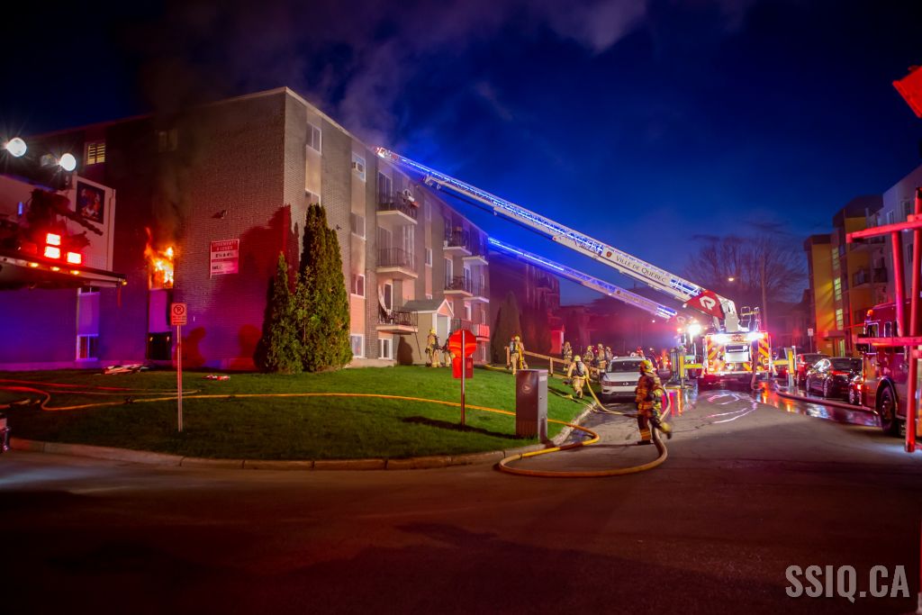 Cette nuit, un incendie dans un immeuble multilogements de 3 étages a nécessité le déploiement d'une 3e alarme au 44 rue Paquet, dans l'arrondissement La Haute-Saint-Charles.