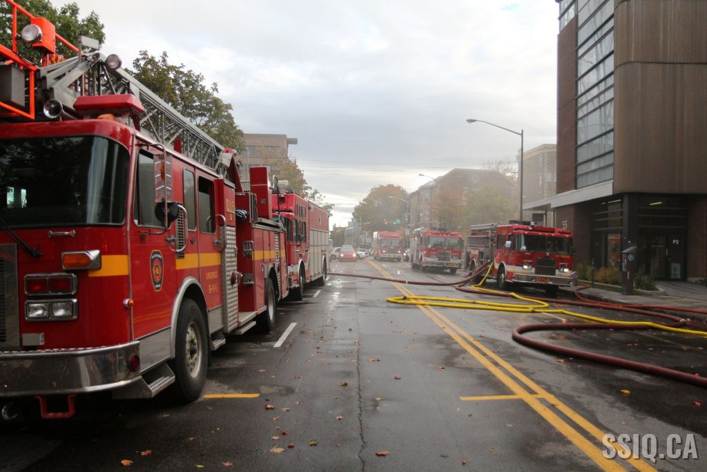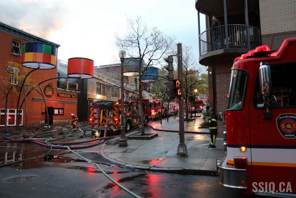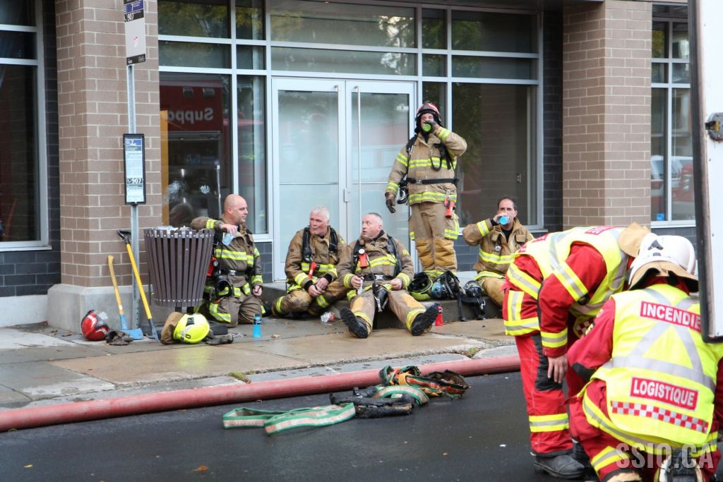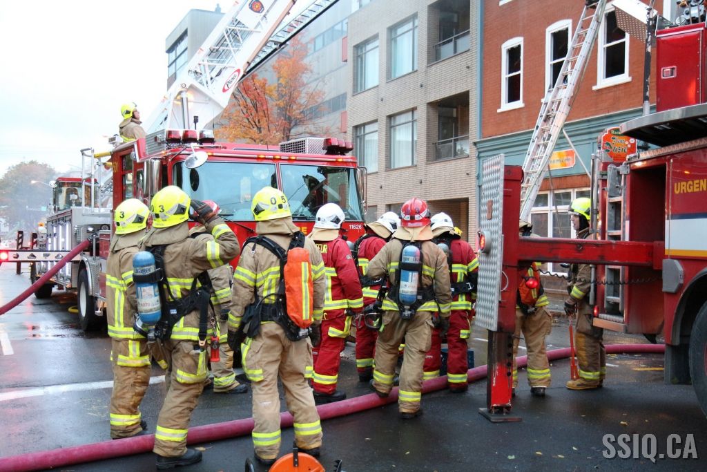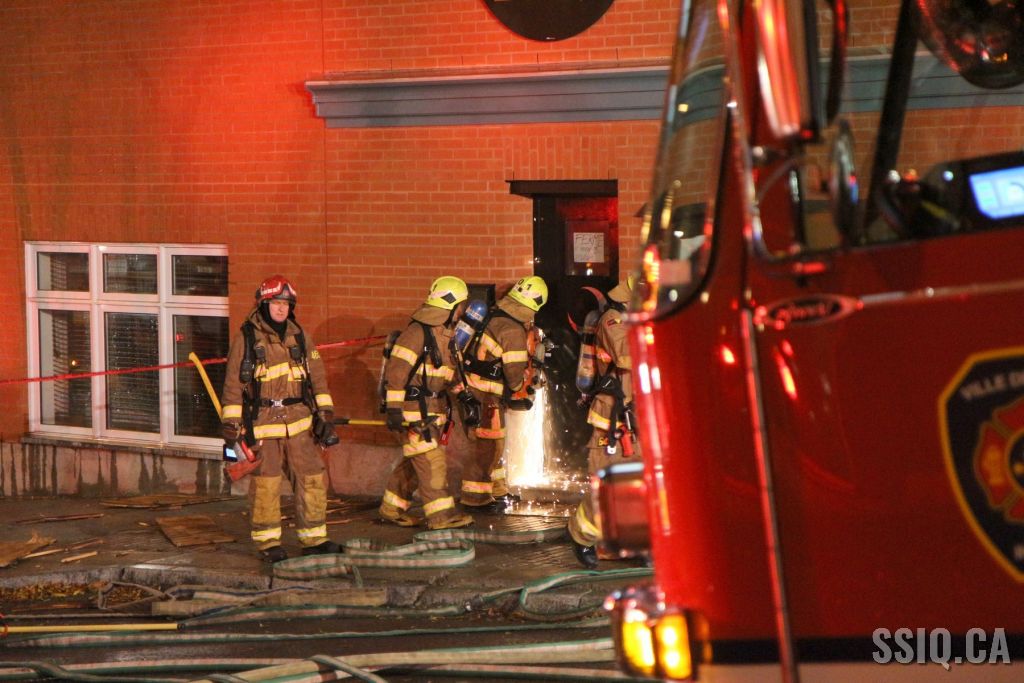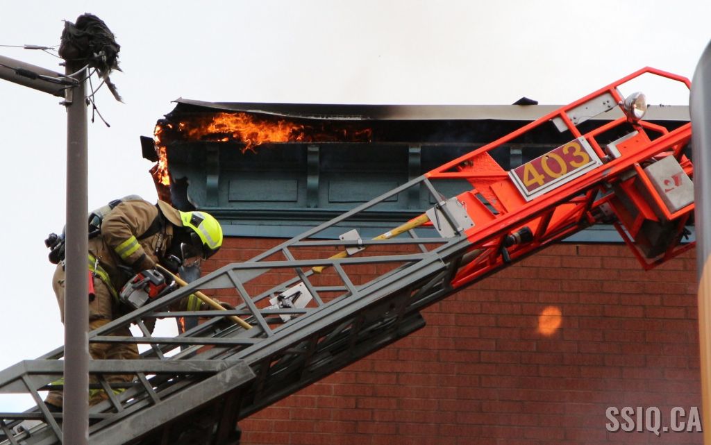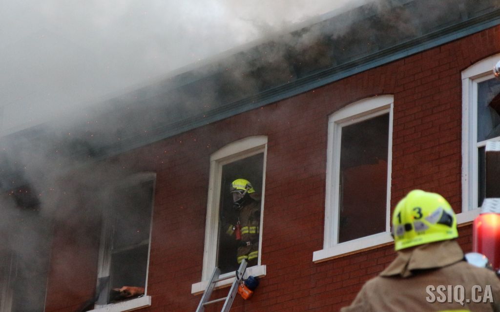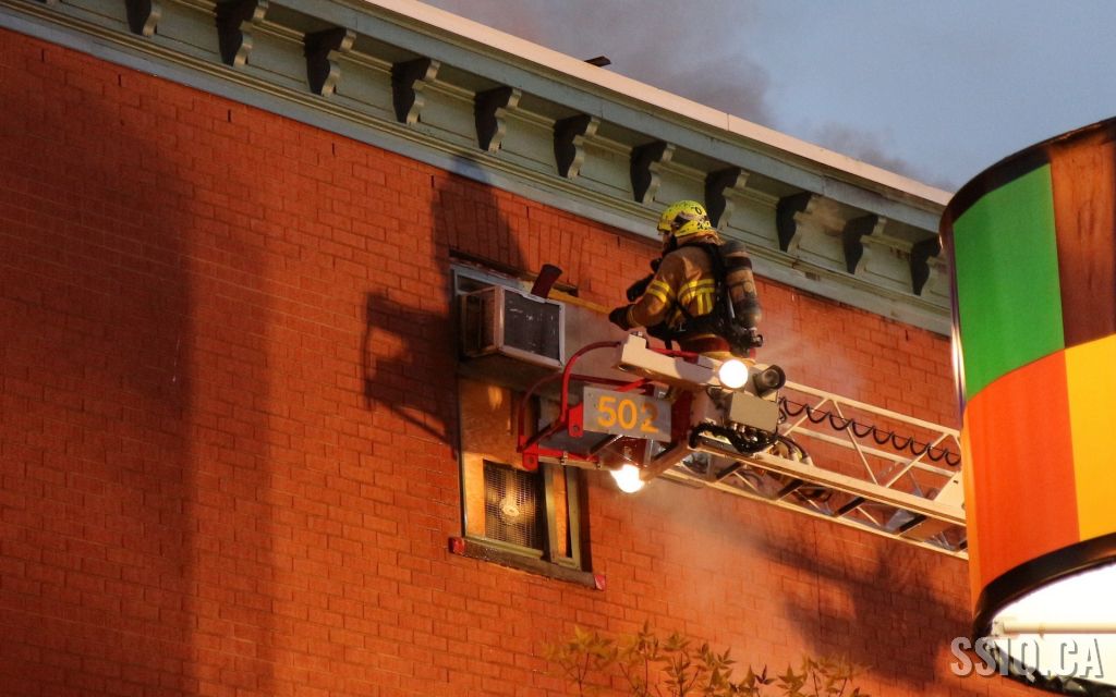Plusieurs appels entrent au 9-1-1 pour signaler des flammes et de la fumée apparentes au niveau de la toiture. Le 201 partant de la caserne 1 non loin de là, arrive très rapidement et confirme une fumée apparente et ordonne l'intervention nécessaire. Les pompiers procèdent à l'évacuation.
