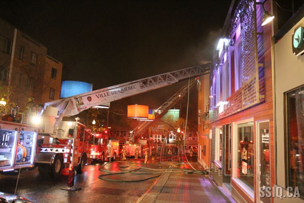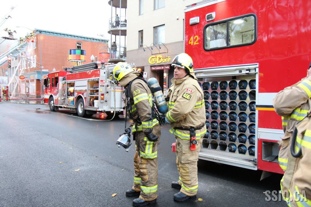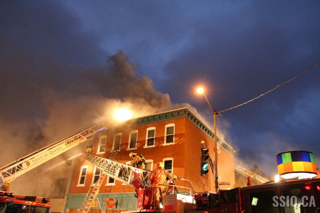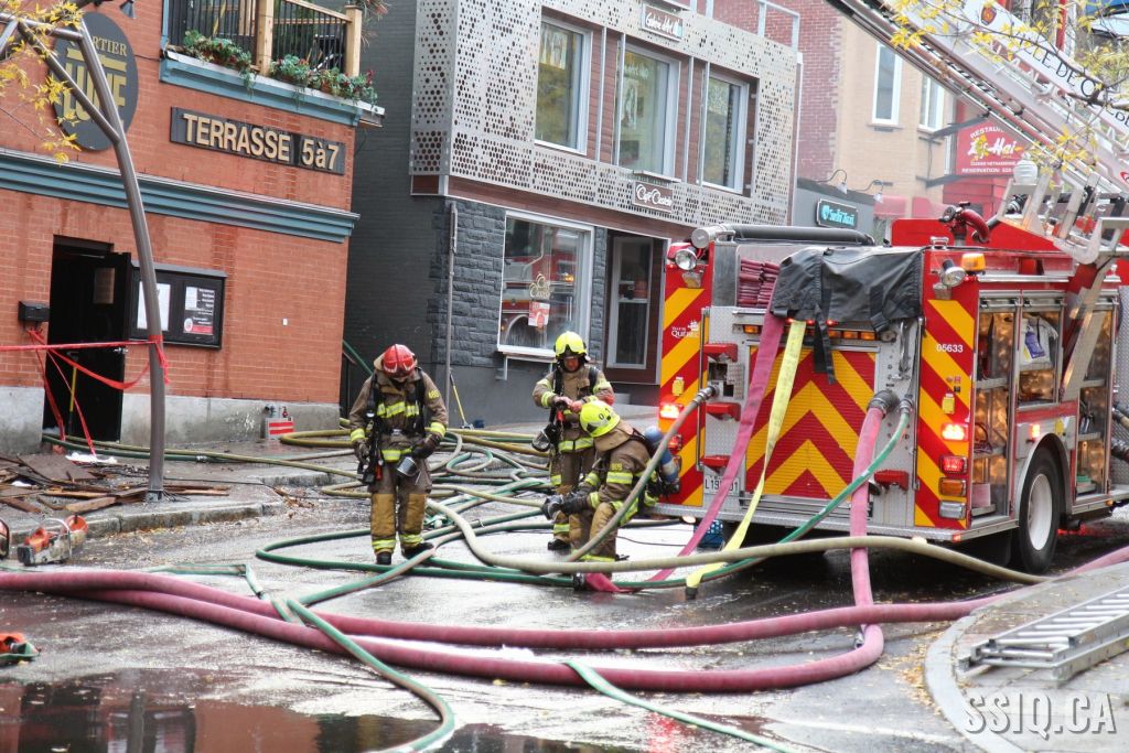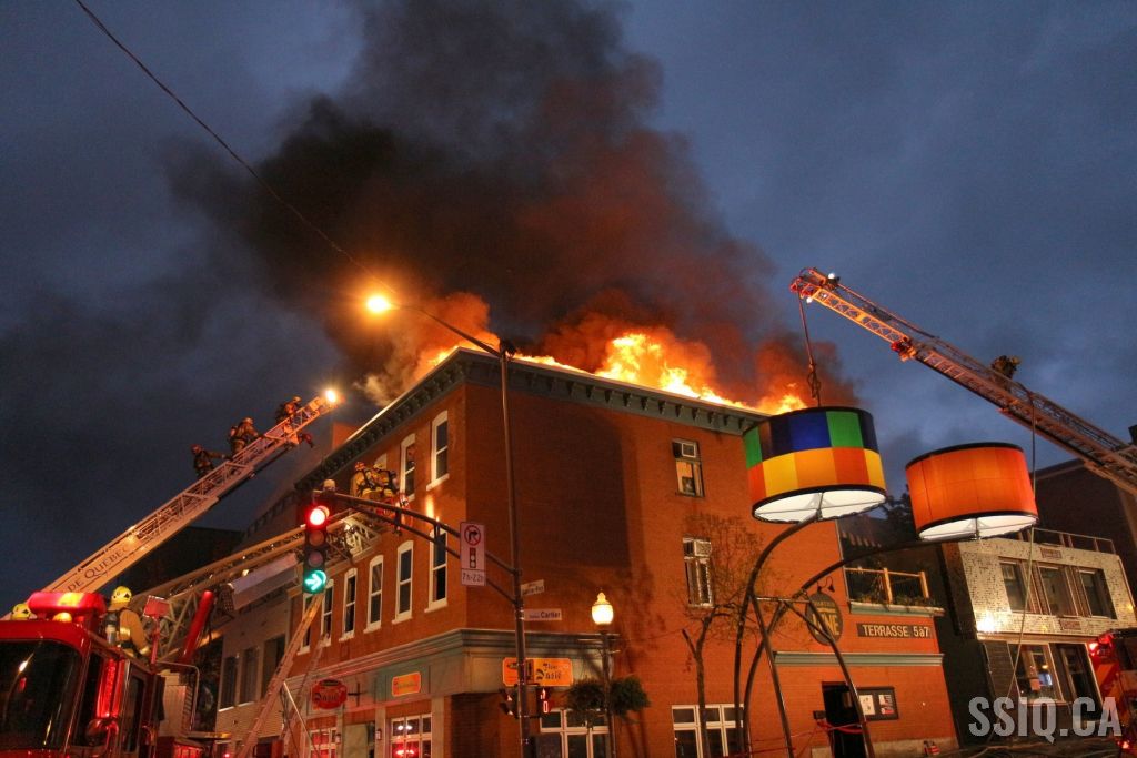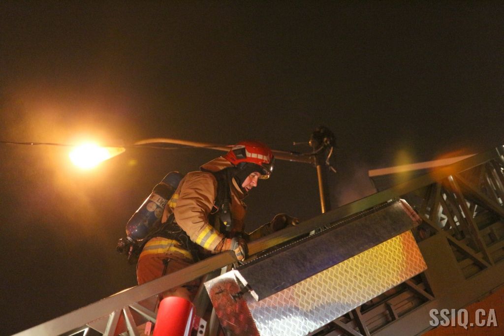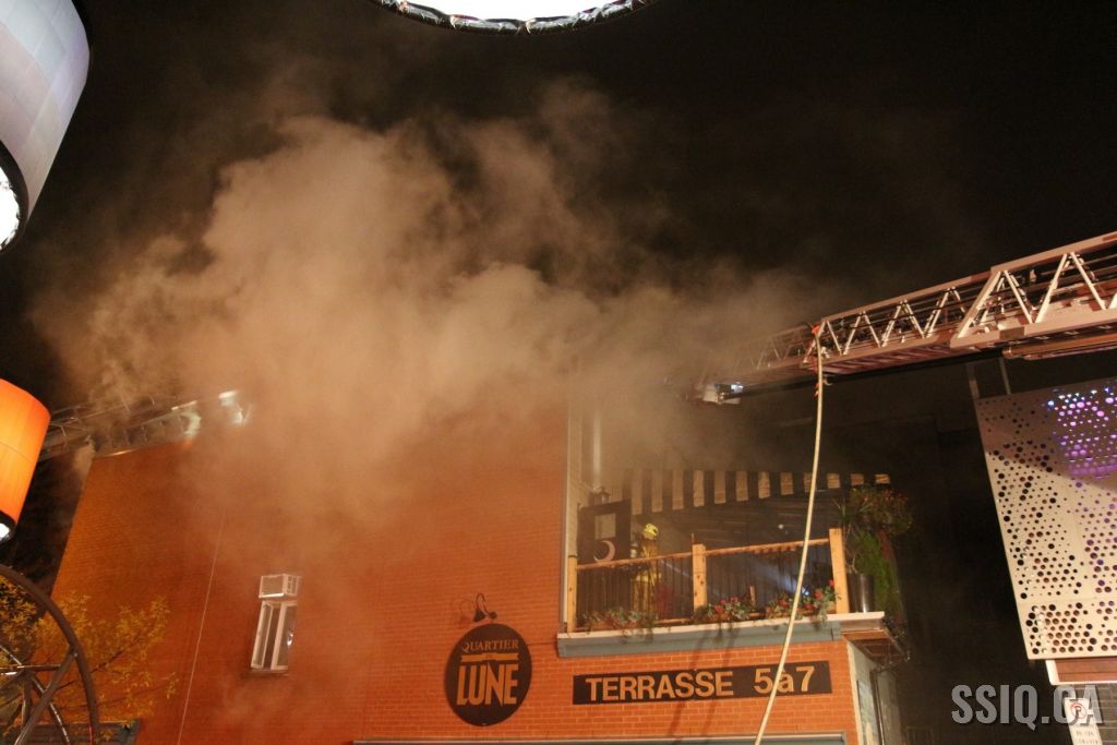 Plusieurs appels entrent au 9-1-1 pour signaler des flammes et de la fumée apparentes au niveau de la toiture. Le 201 partant de la caserne 1 non loin de là, arrive très rapidement et confirme une fumée apparente et ordonne l'intervention nécessaire. Les pompiers procèdent à l'évacuation.