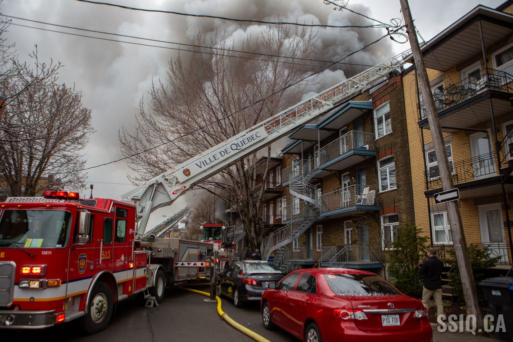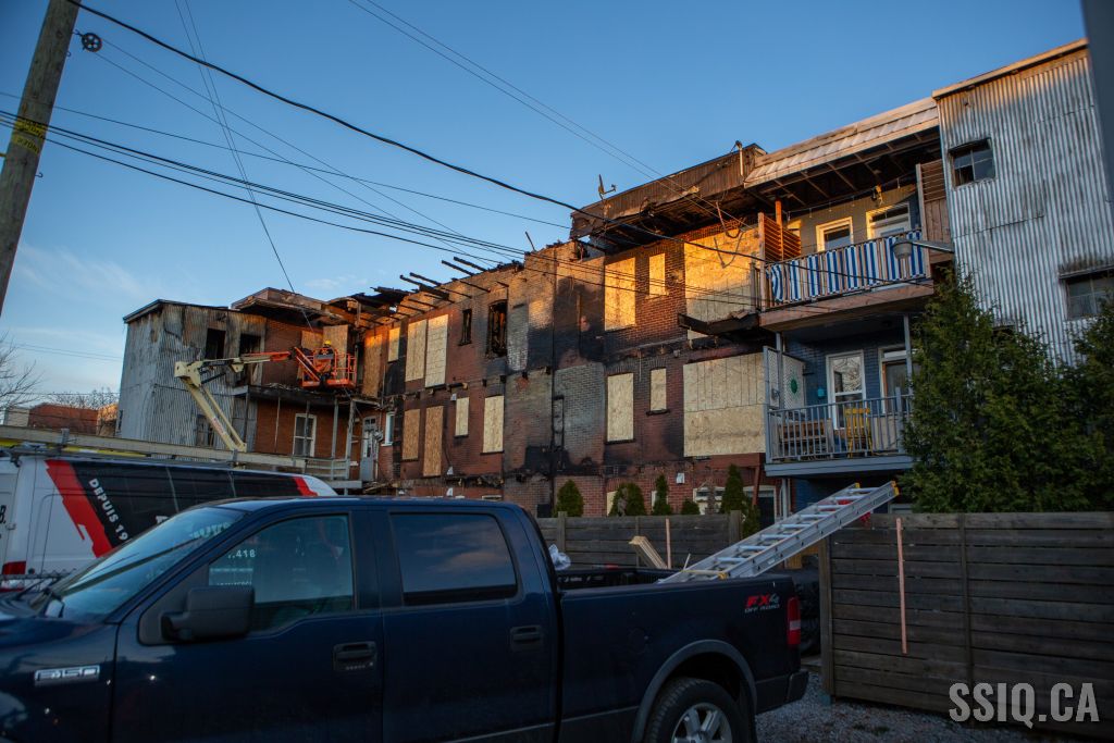 Réveil brutal au coeur du Vieux-Limoilou, tôt ce matin, alors qu'un incendie majeur nécessitant 5 alarmes a fortement endommagé 5 immeubles de type triplex de la 10e rue.