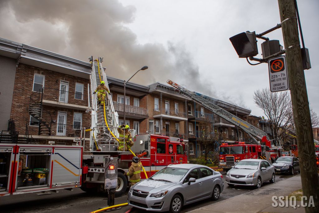 Alors que la propagation aux immeubles voisins est imminente, l'intervention monte en 3e, 4e et finalement en 5e alarme, en moins de 30 minutes, afin d'acheminer les effectifs nécessaires pour combattre ce brasier. Un délestage à distance est aussi demandé à Hydro-Québec pour couper rapidement l'alimentation électrique.