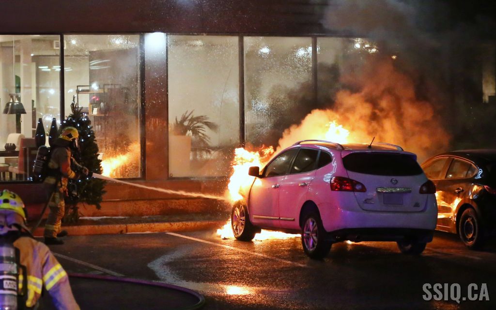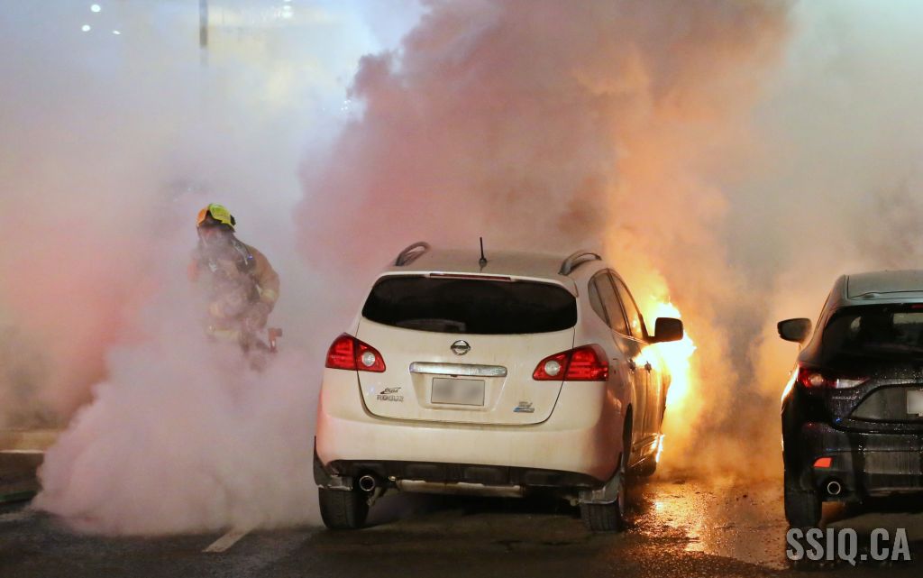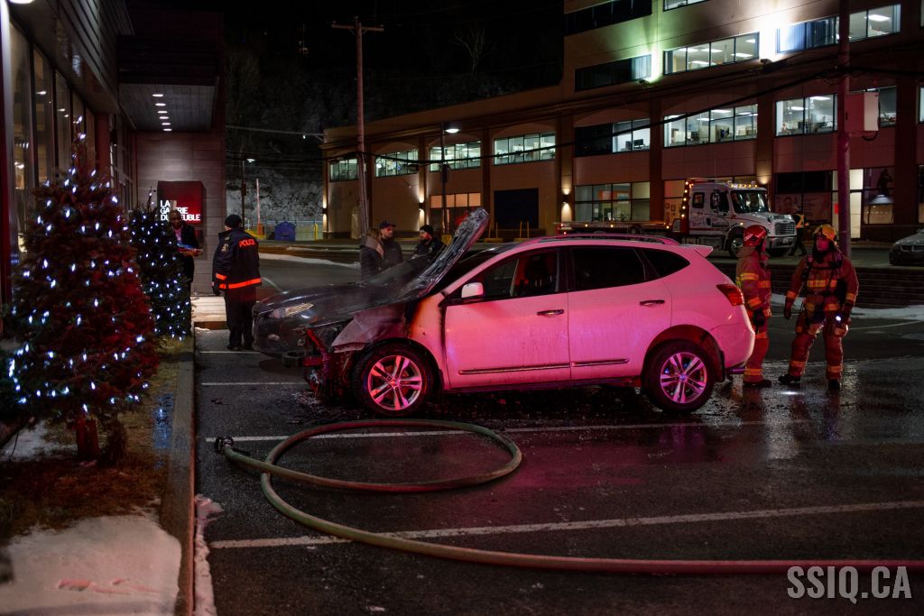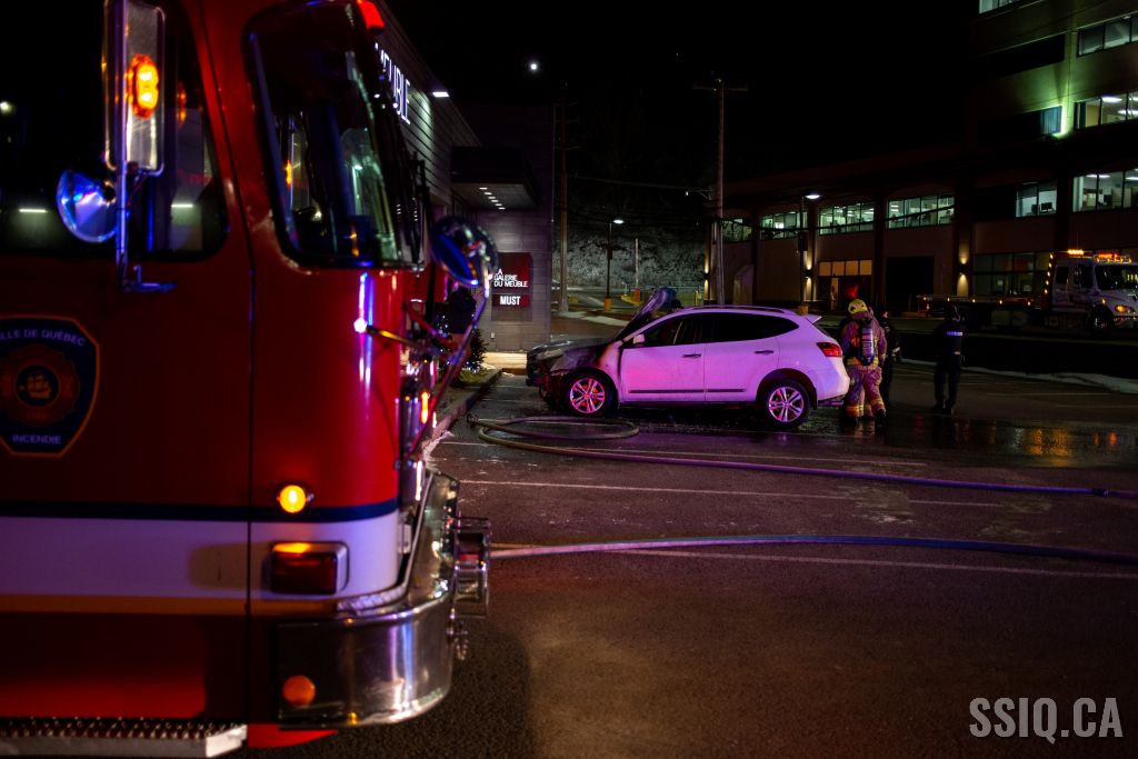 En milieu de soirée, un incendie de véhicule a causé plus de peur que de mal, dans le stationnement d'un commerce du boulevard Charest ouest.