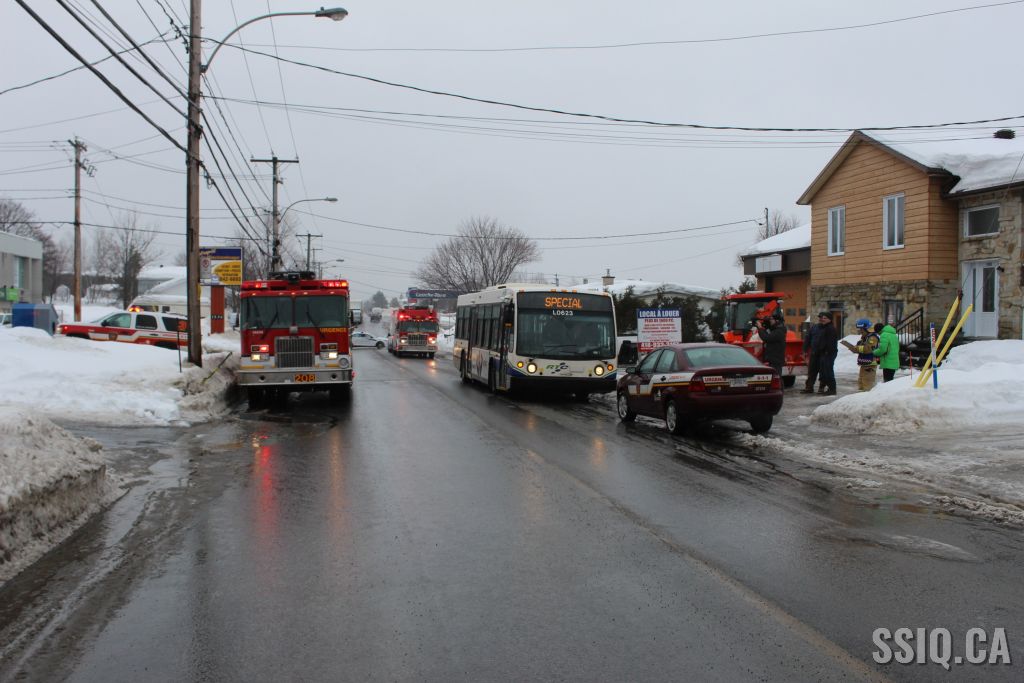Suite à des travaux de déneigement de la cour arrière du commerce, un camion de déneigement a accroché une conduite de gaz qui alimente le bâtiment. Un important déploiement du service incendie a été nécessaire le temps que la compagnie de gaz colmate la fuite. Les bâtiments voisins ont été évacués le temps de l'intervention.