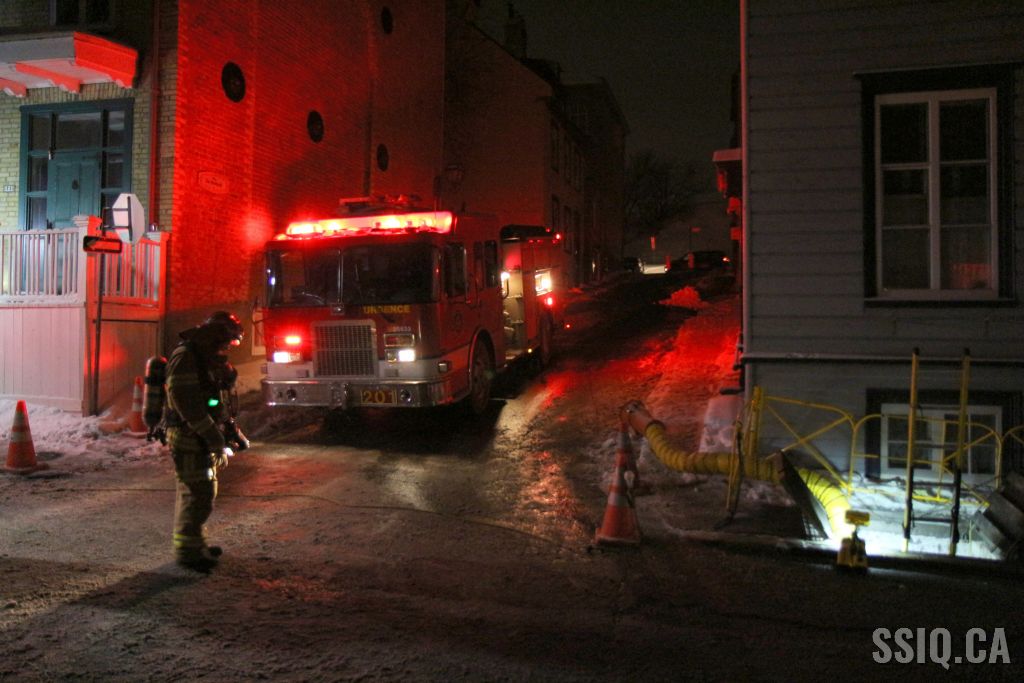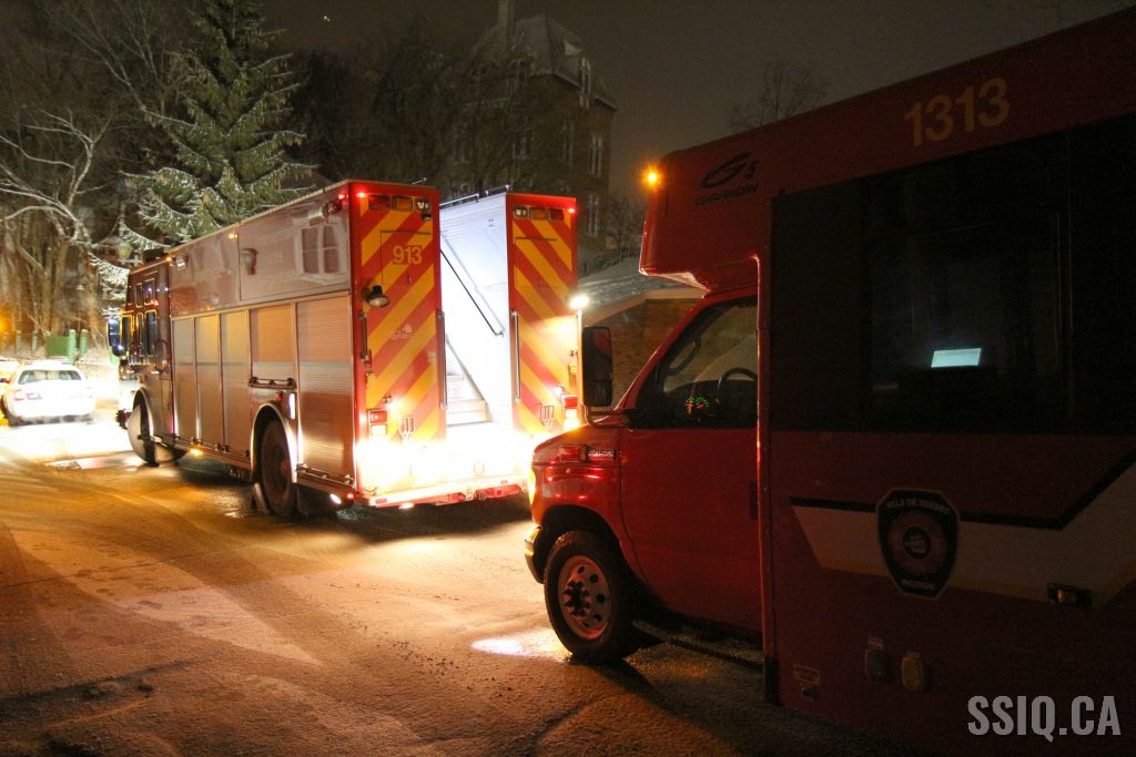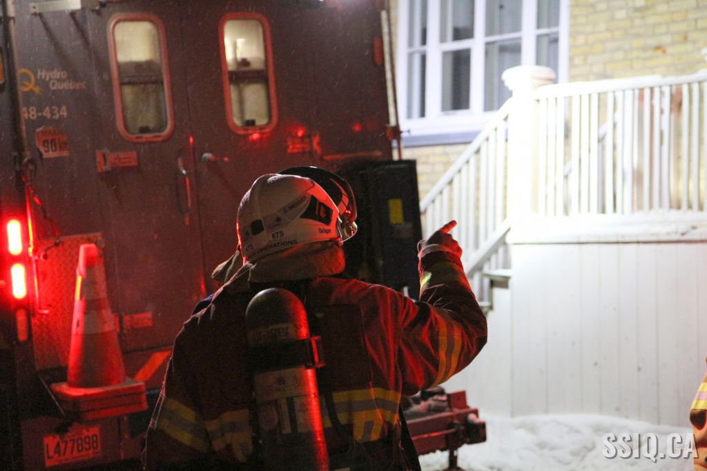 Arrivé sur place, le 201 confirme une fumée qui sort d'un trou d'homme, les pompiers débutent des vérifications avec les employés d'Hydro Québec. L'alimentation électrique est coupée pour permettre aux pompiers de travailler sans danger.