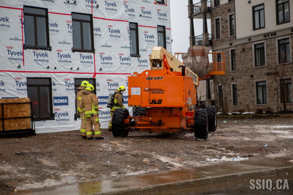 Rien n'est apparent pour les premières équipes à arriver sur les lieux. Les recherches et les traces au sol permettent cependant de constater que la fuite provient d'un appareil d'élévation de type SkyTrack.