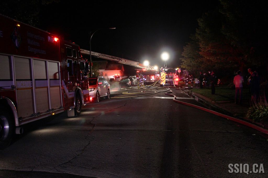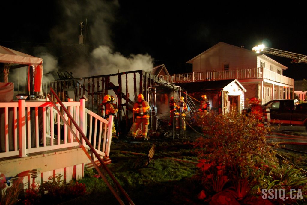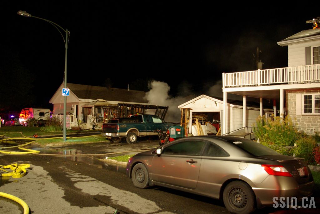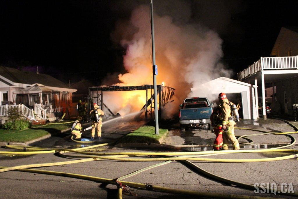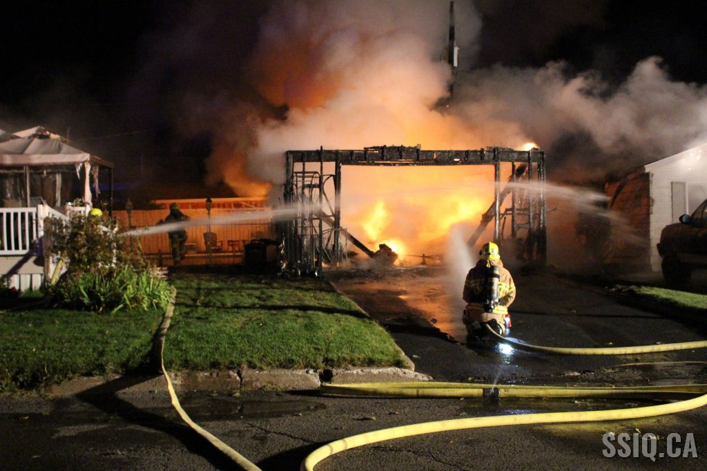 Le premier appelant à la centrale 911 mentionne que le feu est pris dans le garage détaché de son voisin.