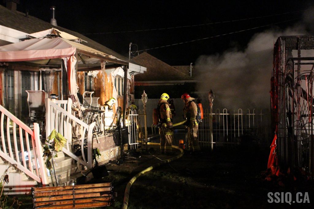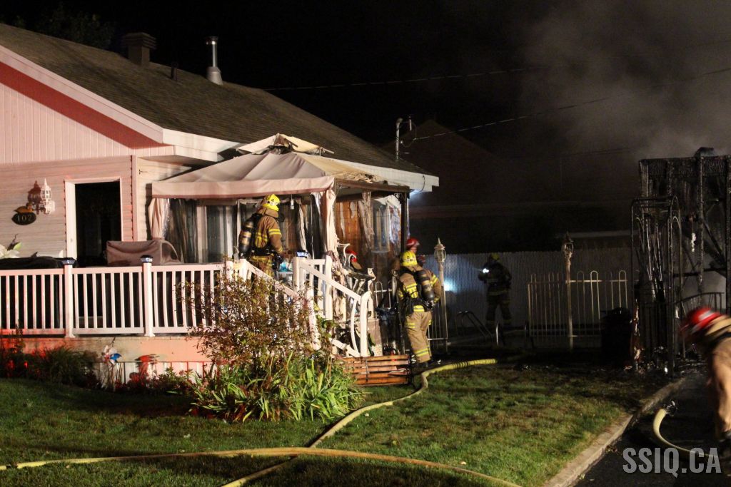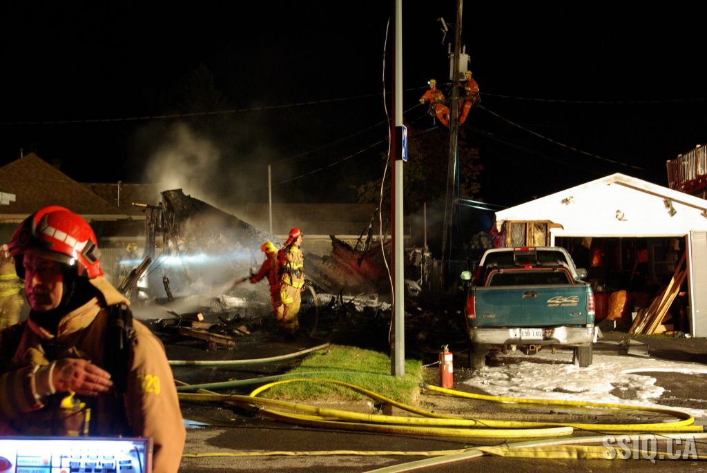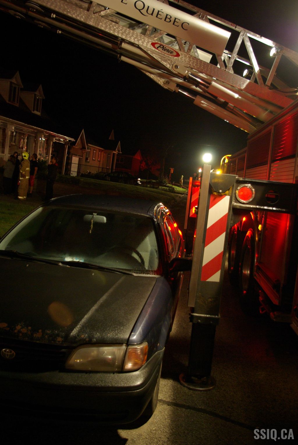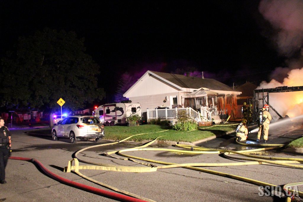 Le premier appelant à la centrale 911 mentionne que le feu est pris dans le garage détaché de son voisin.