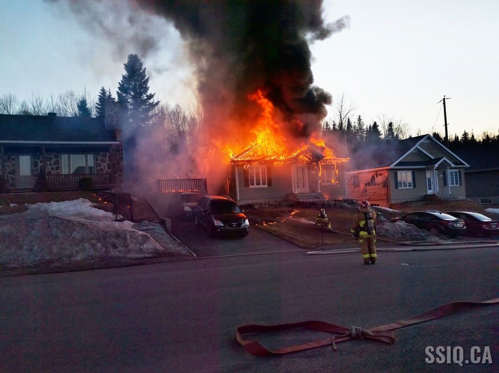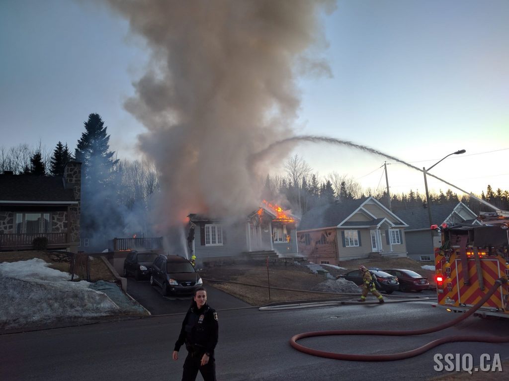 L'appel vient d'un voisin, il mentionne qu'un gros feu est en progression dans la résidence en face de chez lui et que l'évacuation est en cours.