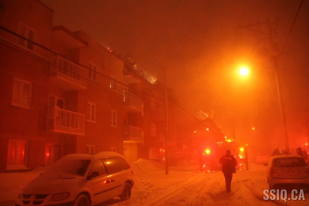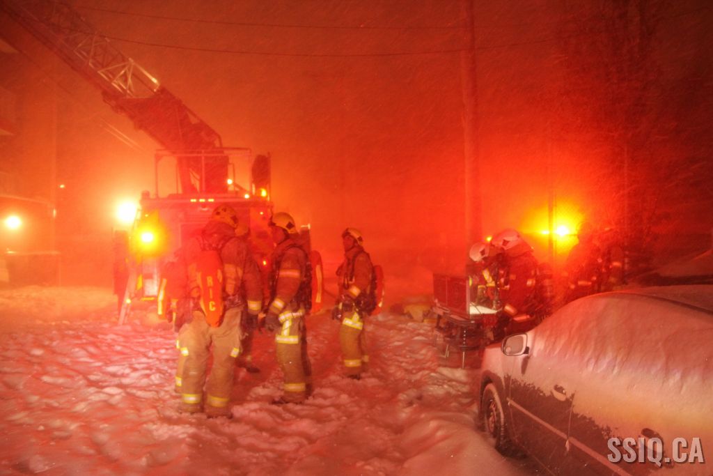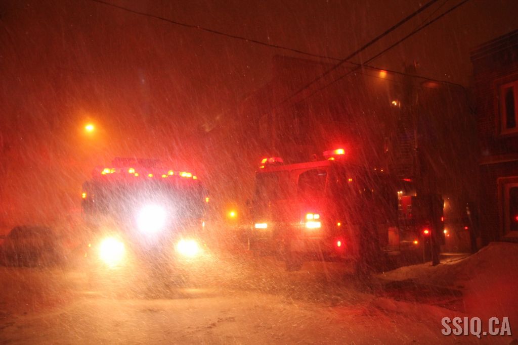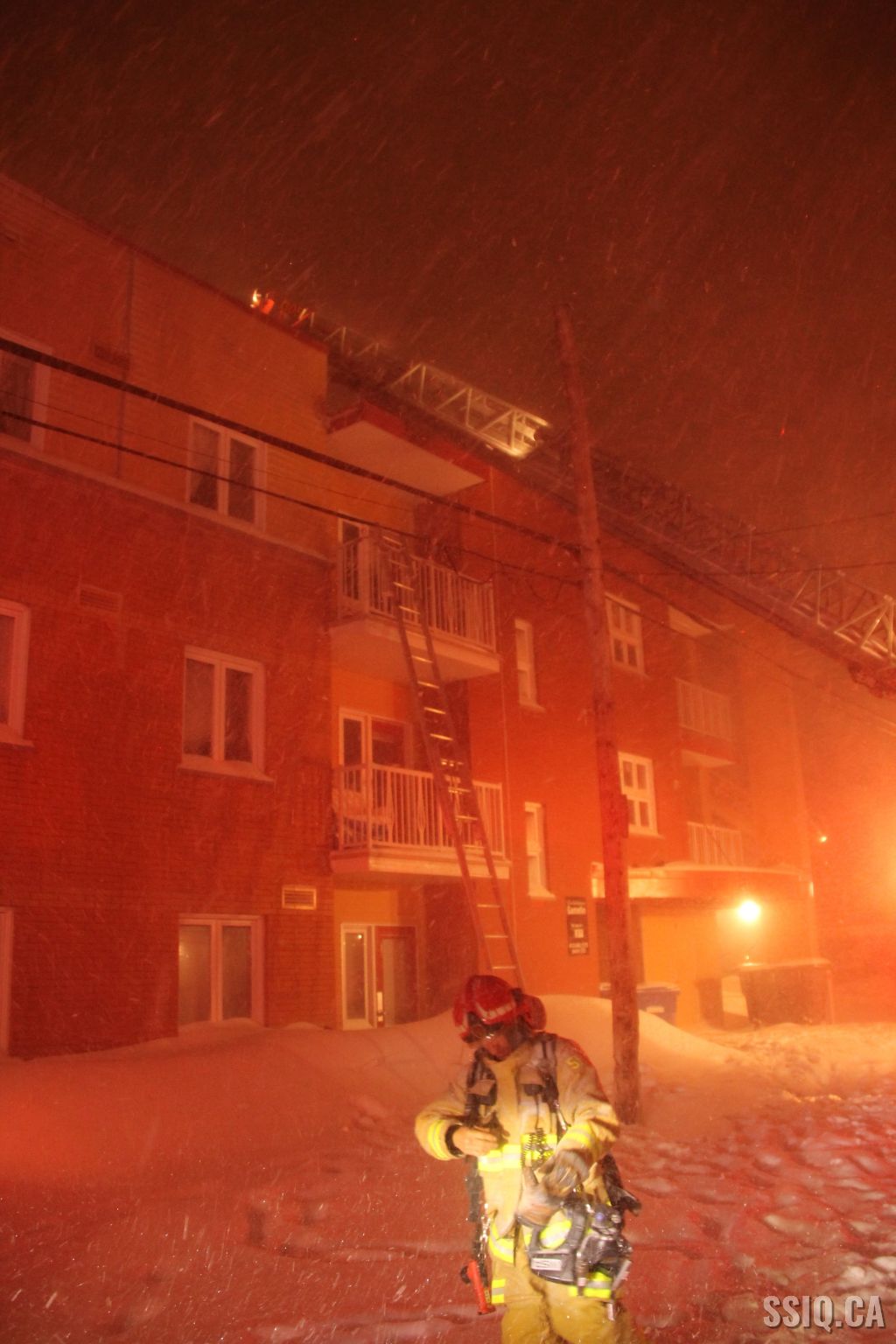 L'appel entre d'un résident de l'endroit, il fait mention que le feu serait pris dans le toit du bâtiment.