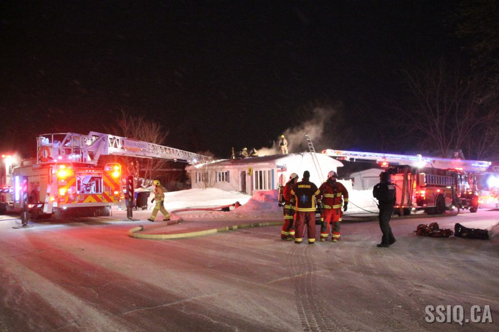L'incendie qui aurait pris naissance à proximité du foyer au sous-sol, c'est propagé jusque dans l'entre toit. Plusieurs jets ont été établi pour maîtriser l'incendie.