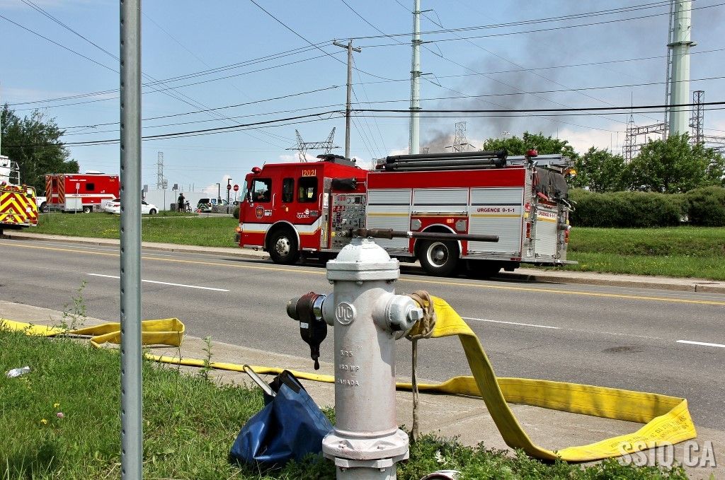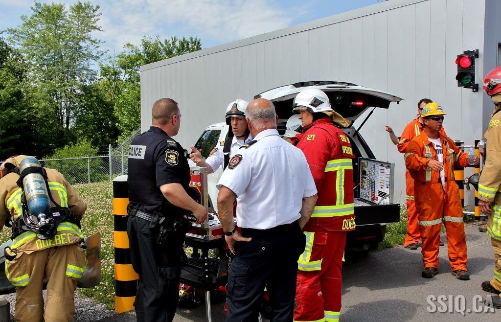 Les ingénieurs de l'Hydro évaluent la procédure à suivre pour procéder de façon sécuritaire pour les intervenants. Les services du véhicule 1299 ont été déployés, étant donné la chaleur accablante et l'absence de points d'ombre autour du site.