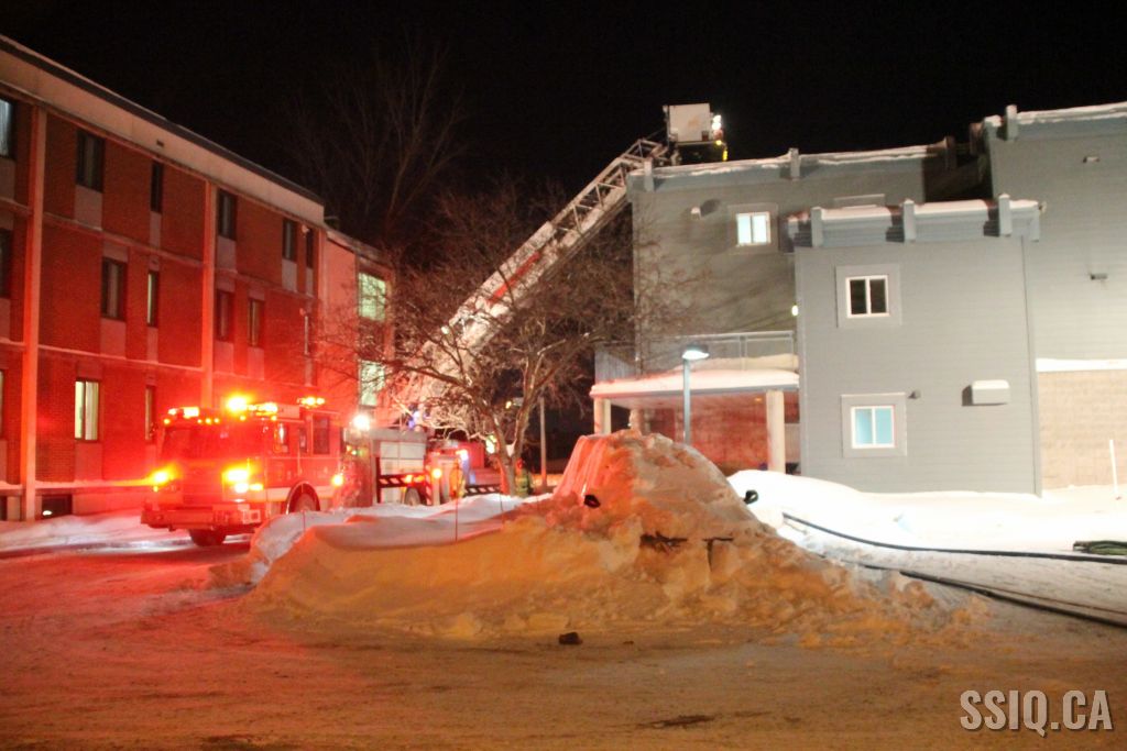 En milieu de soirée, plusieurs appels sont logés au 911 pour mentionner que le feu serait pris à l'arrière dans la résidence de personnes âgées de 19 logements située au 1600 rue de la Pointe-aux-Lièvres.