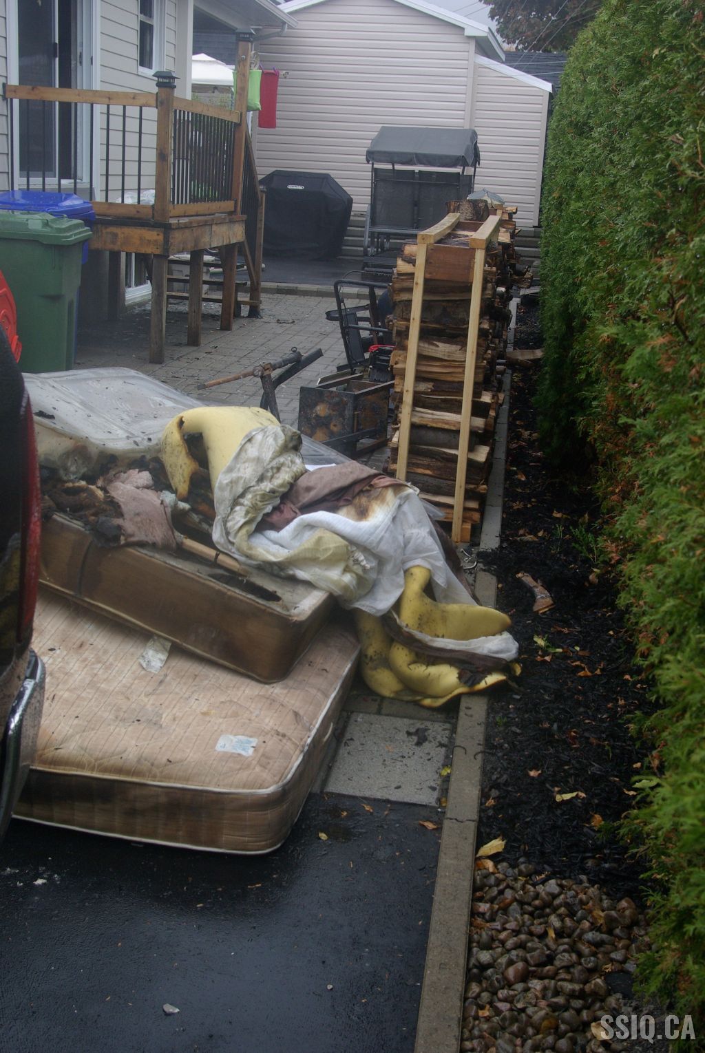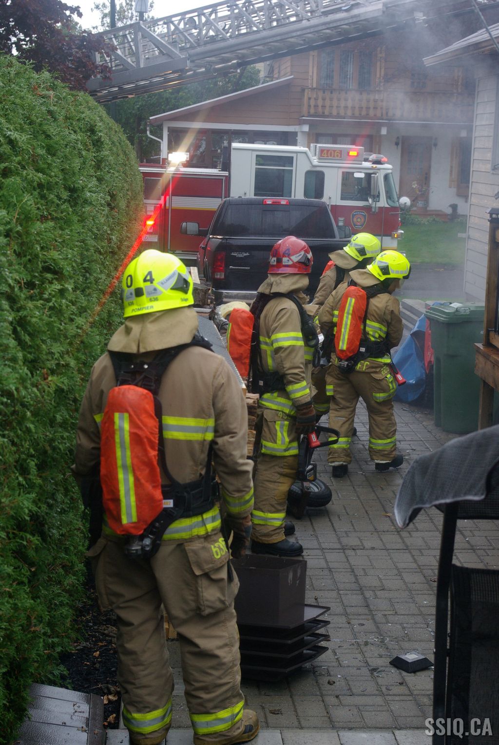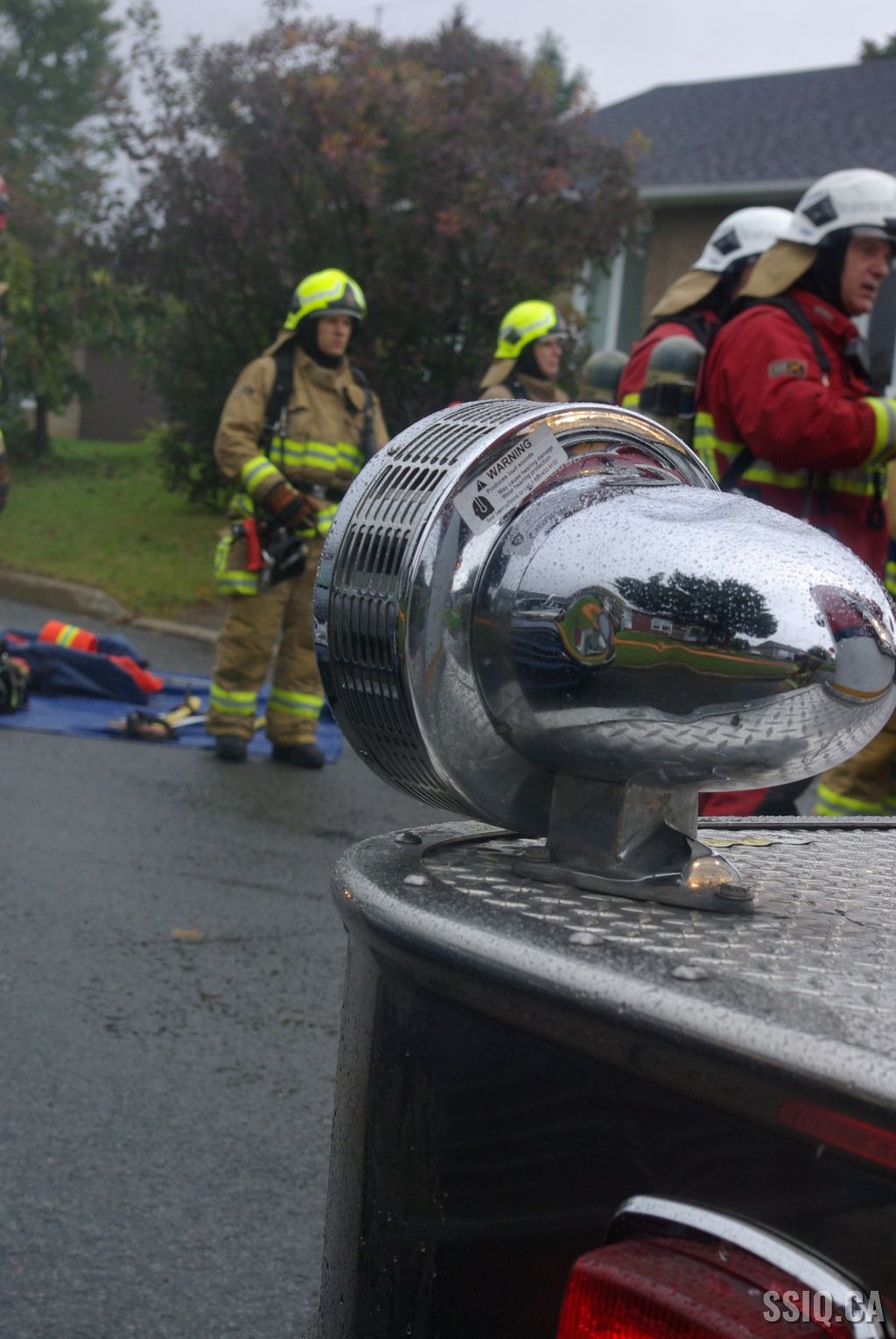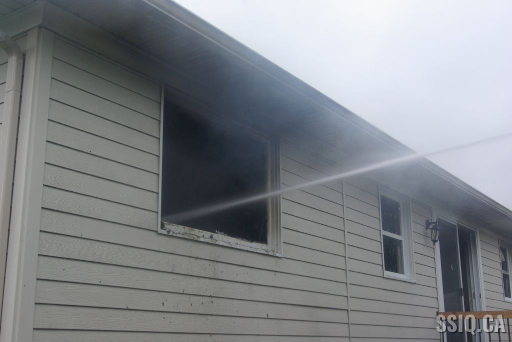 Le résident de la maison appelle pour mentionner que le feu est pris dans le plafond et que de la fumée s'échappe de l'échangeur d'air au sous-sol. De nouveaux détails font mention que la fumée sort également par la cheminée. L'officier du 206 arrivé sur les lieux rapporte que de la fumée jaune et grise sort d'un peu partout de la couverture. Il demande l'intervention nécessaire.