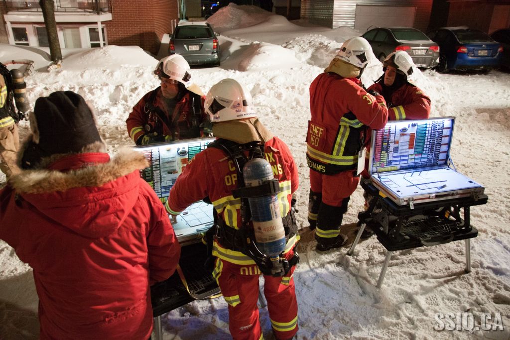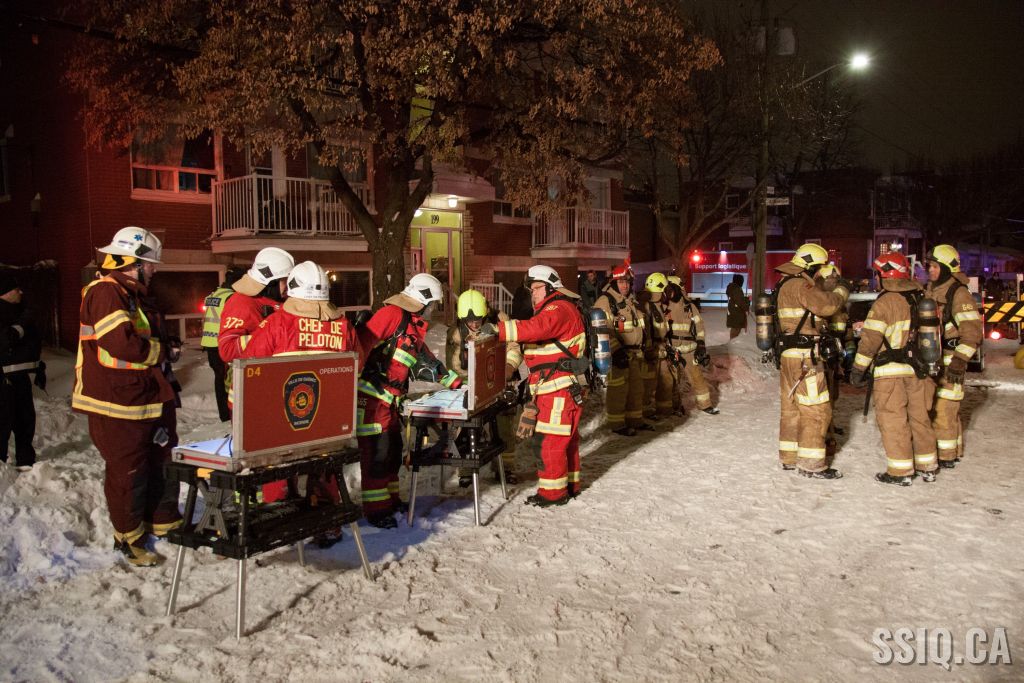 La centrale 911 reçoit plusieurs appels pour signaler l'incendie. Les détails font mention de fumée et flammes visibles au 3e étage de l'immeuble de 6 logements. Devant les détails, et en route vers l'intervention, le chef Savard ordonne l’intervention nécessaire.