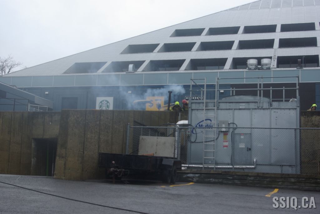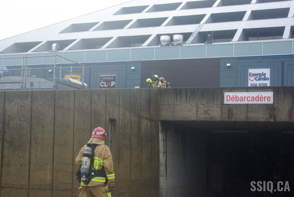 Le feu sortirait du sous-sol en arrière selon un plaignant et en même temps une alarme incendie est reçue à la centrale 911. Il y aurait également de la fumée au niveau du cinéma Le Clap.