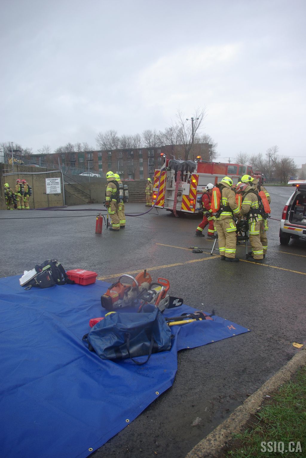 Rapidement arrivé sur les lieux, le superviseur ambulancier confirme de la fumée qui sort par le sous-sol à l'arrière du bâtiment.