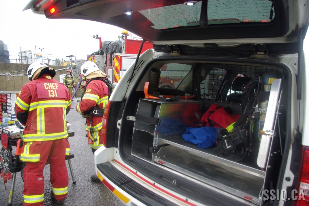 Les premières constatations des équipes arrivées sur les lieux rapportent un feu dans le local où se trouve l'alimentation électrique. Hydro-Québec est donc demandé en priorité un. Le chef demande également l'intervention nécessaire, puisqu'un foyer est visible.
