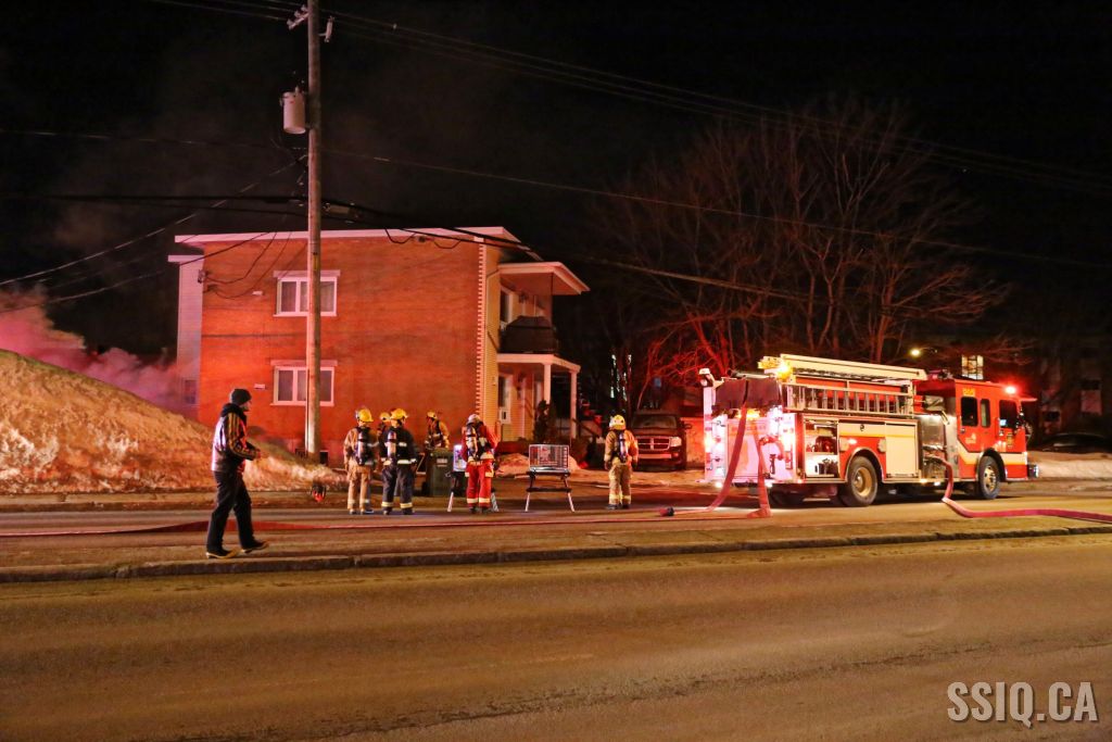 L'appel provient d'un citoyen sur la rue Trudeau, qui mentionne voir des flammes et de la fumée s'échapper d'un immeuble à logement. Il mentionne également voir les gens évacuer le bâtiment. Rapidement sur place, le 205 confirme une fumée apparente ainsi que le feu éclaté au sous-sol et ordonne l'intervention nécessaire. Le 205 rabbat les flammes rapidement tout en s'assurant que le bâtiment est évacué. La propagation étant négative aux étages supérieurs, l'aggravation improbable est donnée par le PC en 30 minutes.