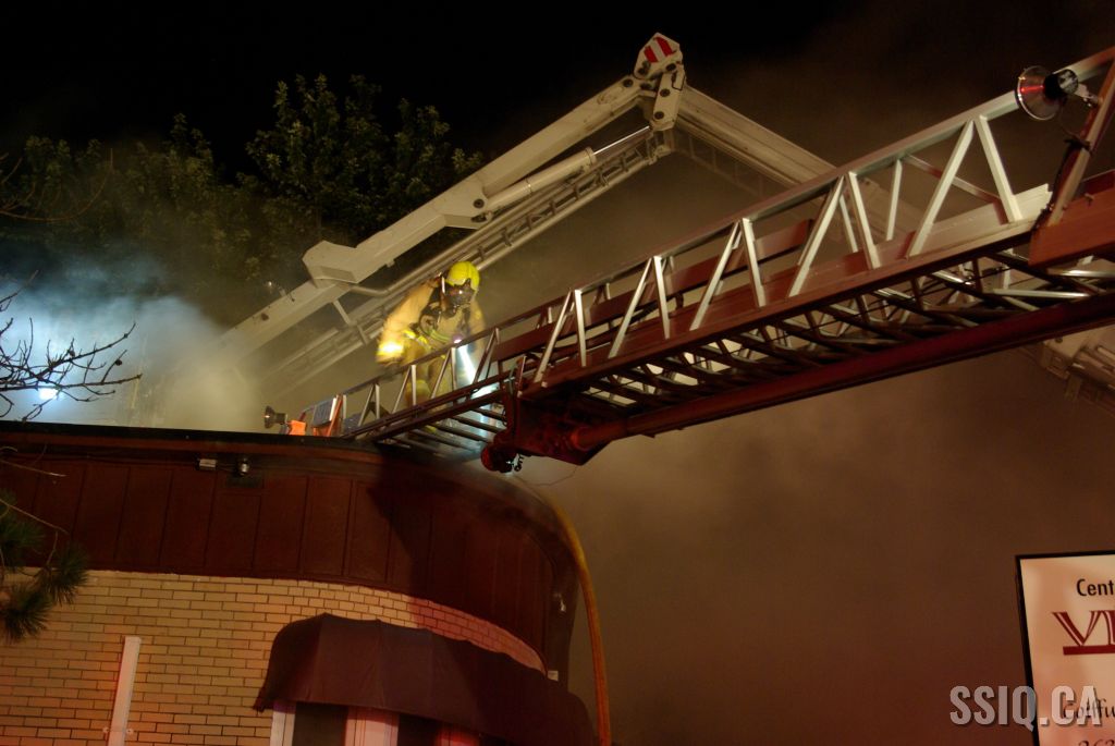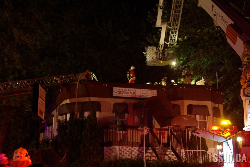 Le bâtiment commercial d'un étage et détaché de tous les côtés ne présente aucun signe apparent selon les informations données par l'officier de la caserne 9 à son arrivée. Néanmoins, la centrale rapporte de la fumée qui sortirait de l'entretoit. C'est confirmé par l'unité 209 qui voit effectivement de la fumée s'échapper de la toiture.