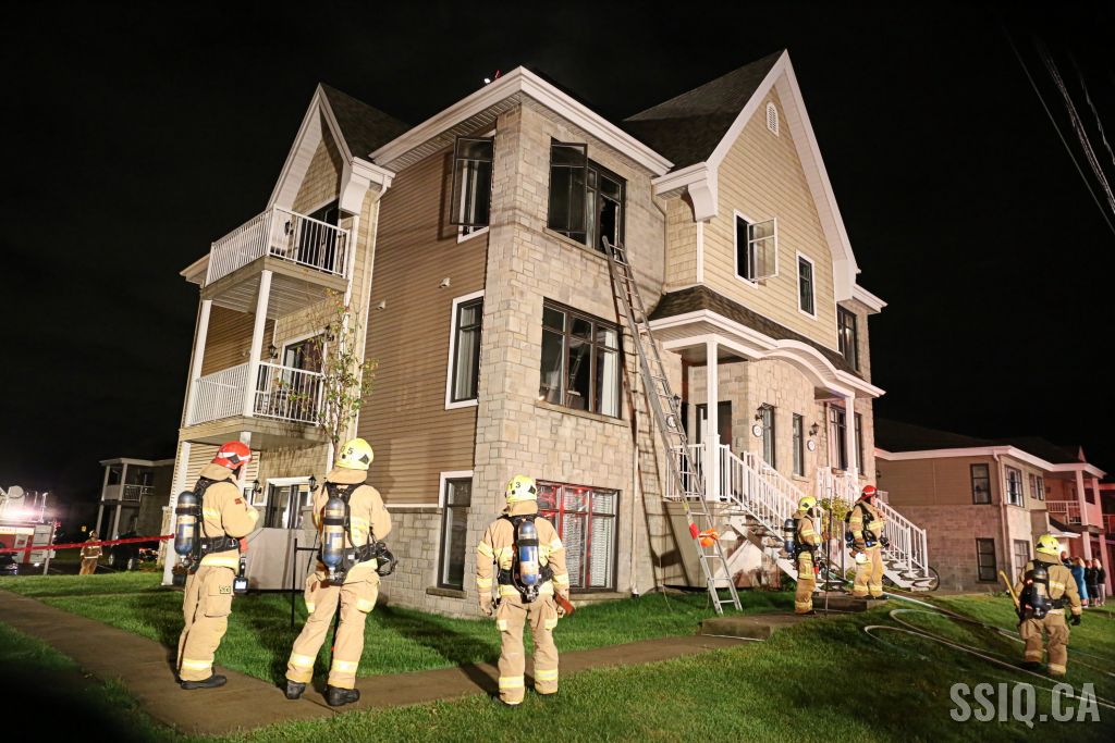 L'appel provient du résident des lieux qui mentionne un début d'incendie dans une garde-robe au deuxième étage, il mentionne que des flammes et de la fumée sont visibles et qu'il fait évacuer les voisins.