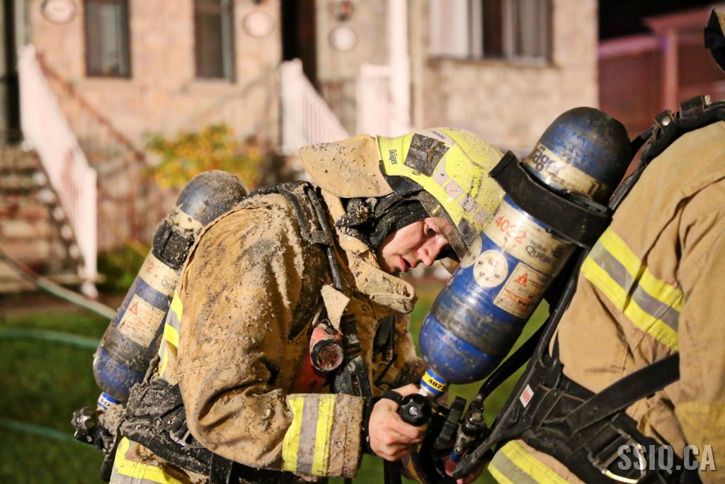 Rapidement sur place, les pompiers de la caserne 6 établissent une lance pour procéder à l'attaque des flammes. L'intervention nécessaire est ordonnée puisqu'il y a un risque de propagation à la toiture et une bonne fumée s'échappe de plusieurs secteurs du bâtiment.