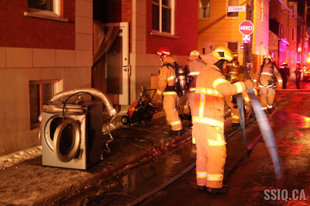 Un appel entre au 911 pour mentionner que le feu serait pris dans une sécheuse.