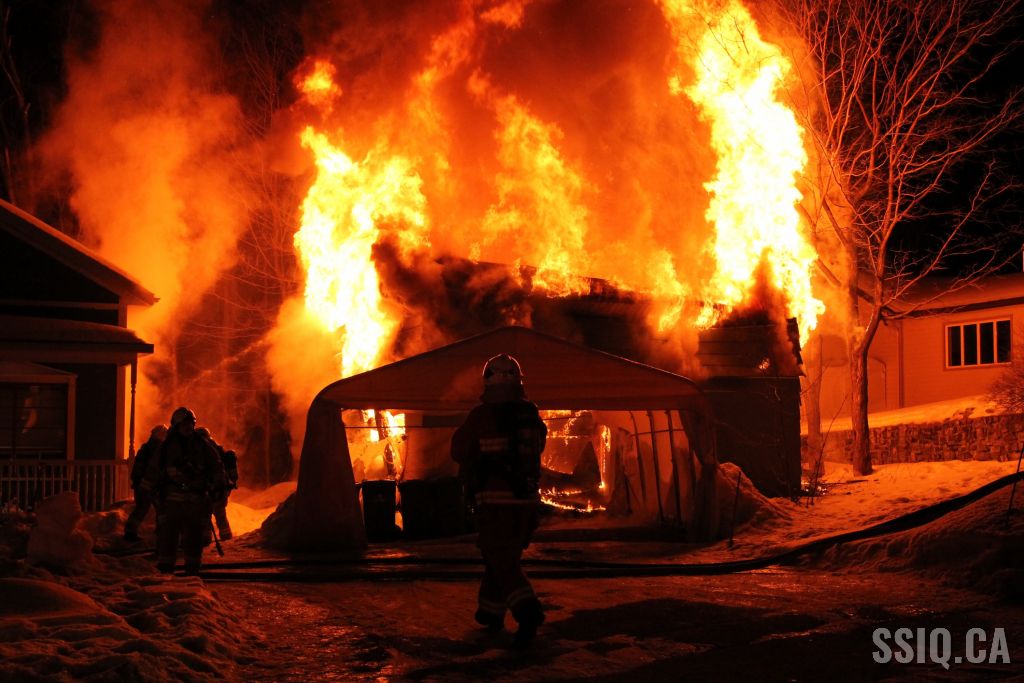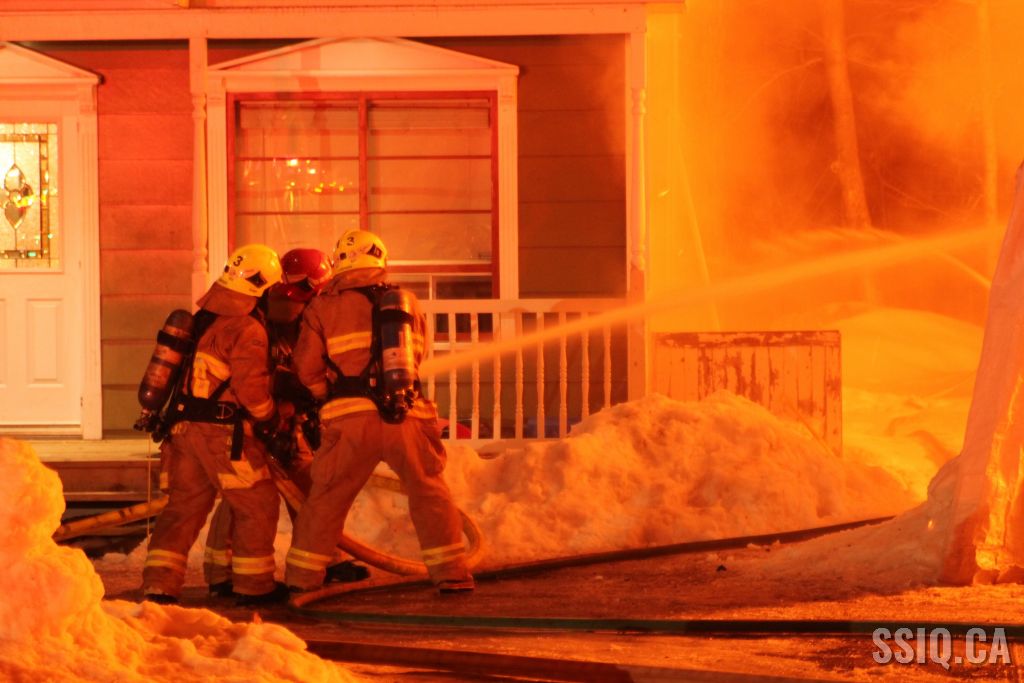 En route pour l'intervention du 1643 Route de l'Aéroport, des policiers constatent qu'un second incendie est en cours au 3210 Route de l'aéroport. Les policiers ont donc évacué les résidents des maisons ou il y avait risque de propagation.