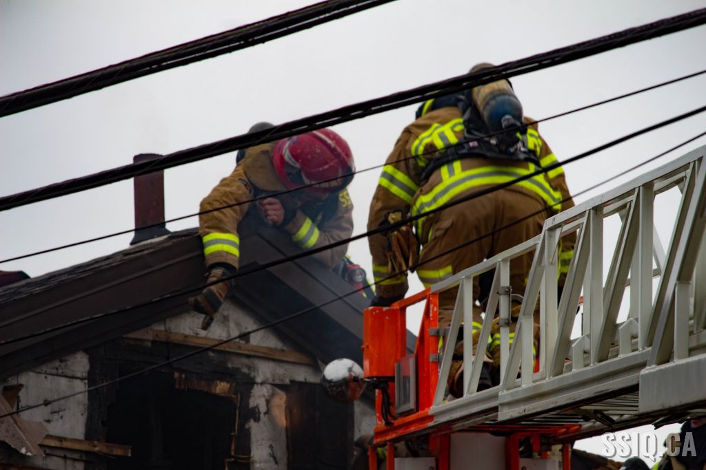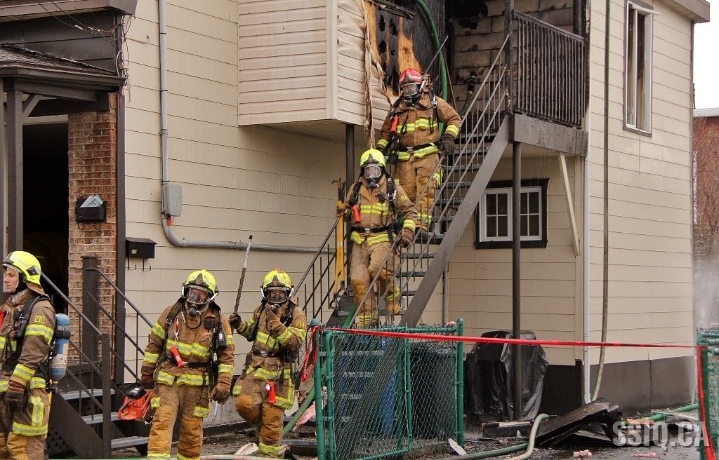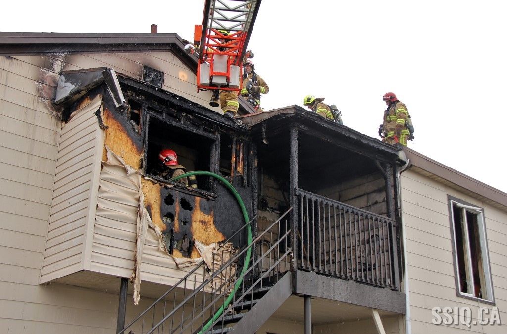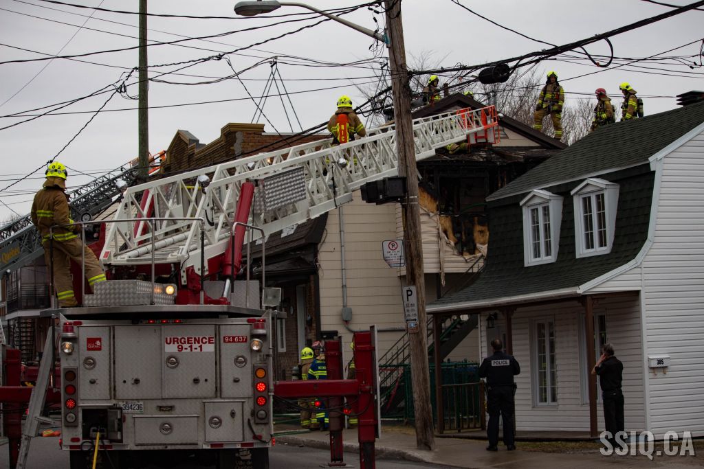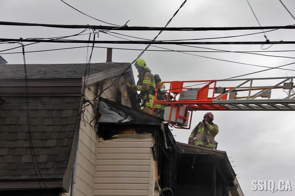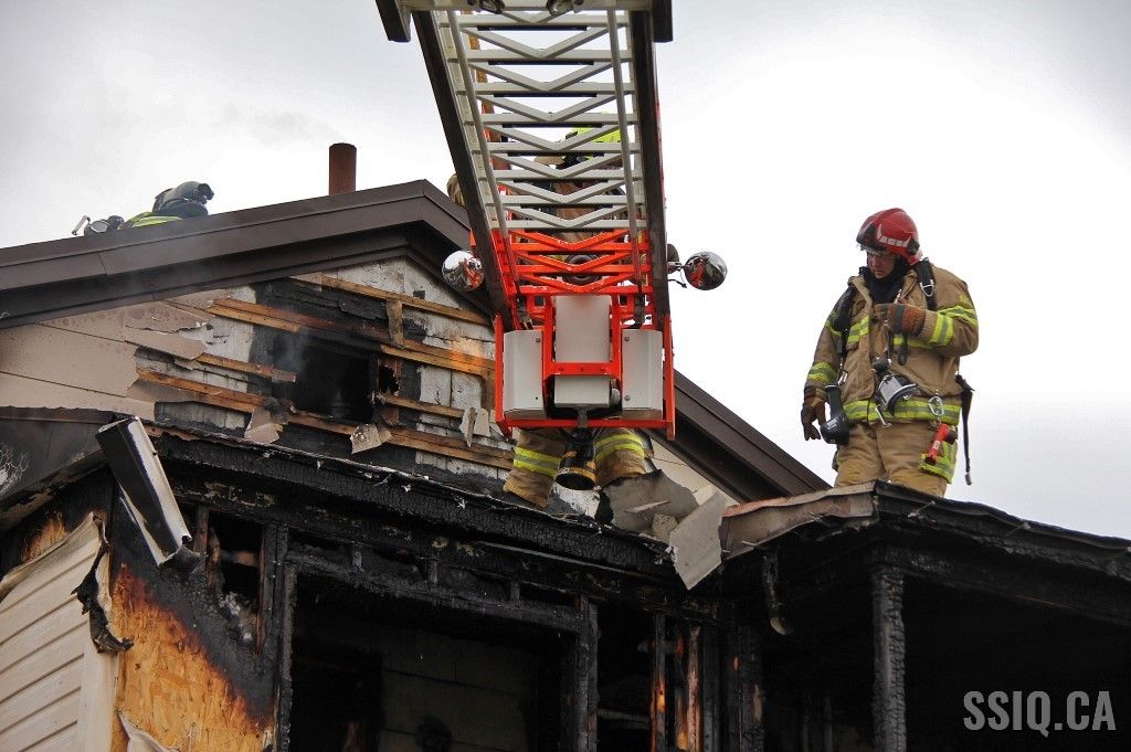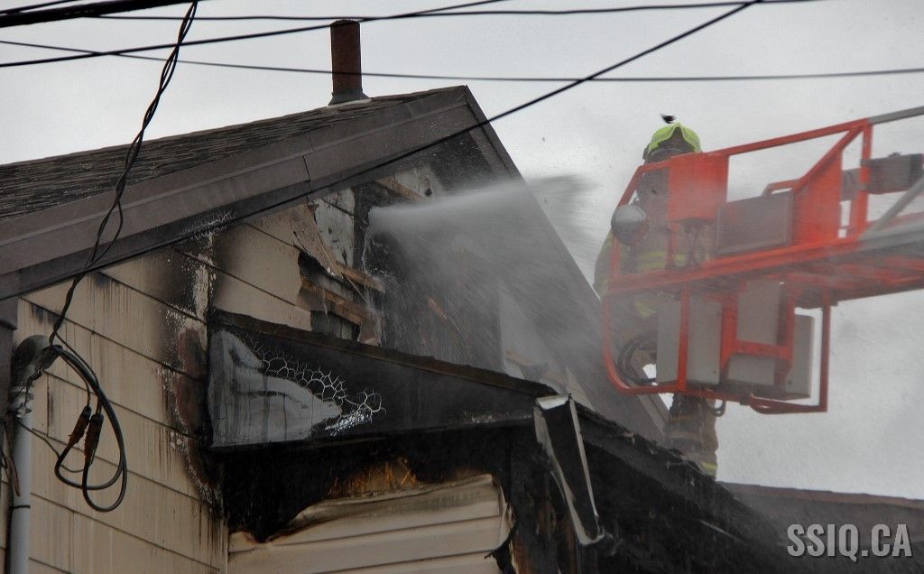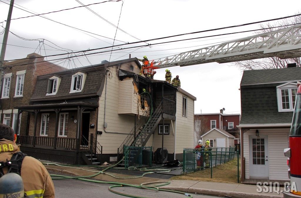De nombreux appels entrent en même temps à la centrale 9-1-1 disant que le feu est éclaté du coté ouest de la maison et se propage à l'intérieur. Un appelant confirme une explosion et constate que le feu est maintenant à l'intérieur du second étage.