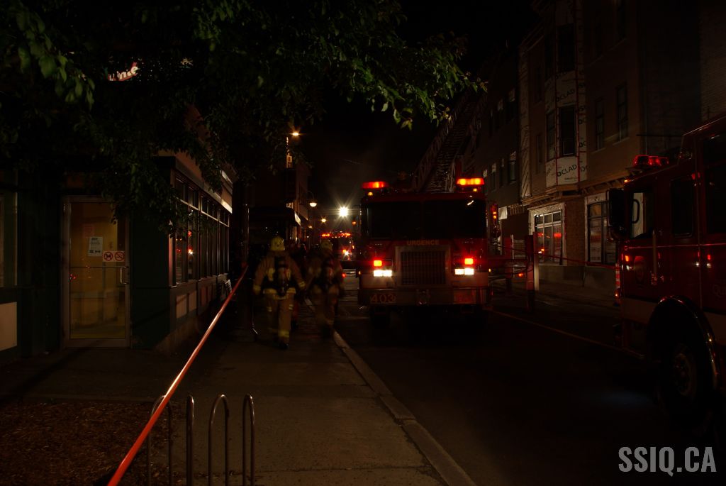 Les pompiers ont été requis suite à un appel de passants qui disent avoir vu de la fumée s'échapper du sous-sol et avoir entendu des explosions. Des flammes seraient également visibles.