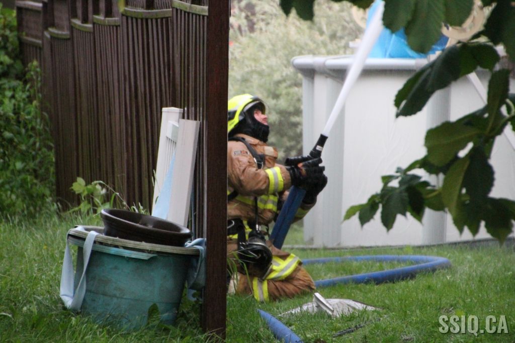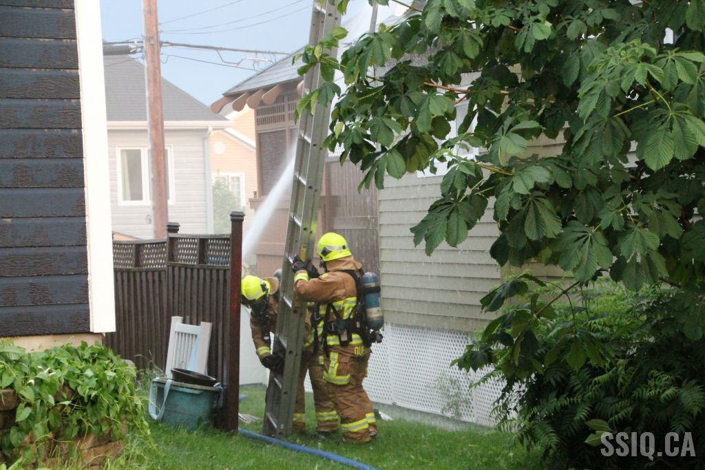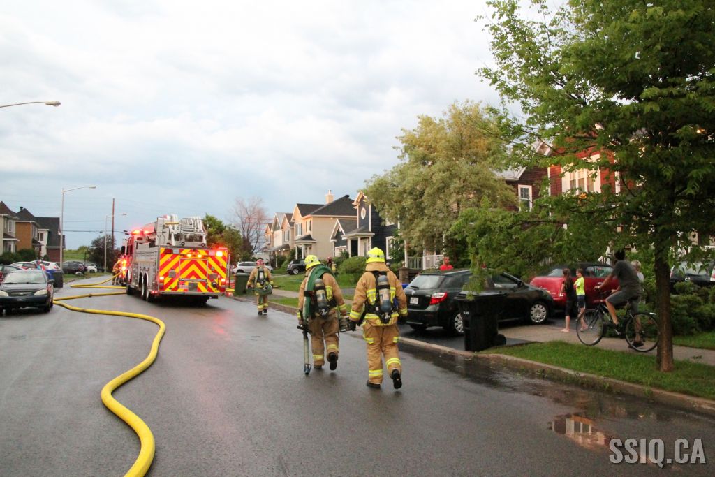 Pendant le violant orage, la foudre est tombée sur la toiture de la résidence. L'appel est logé au 911 du propriétaire. Il mentionne que de la fumée envahit la maison mais qu'il ne voit pas de flammes.