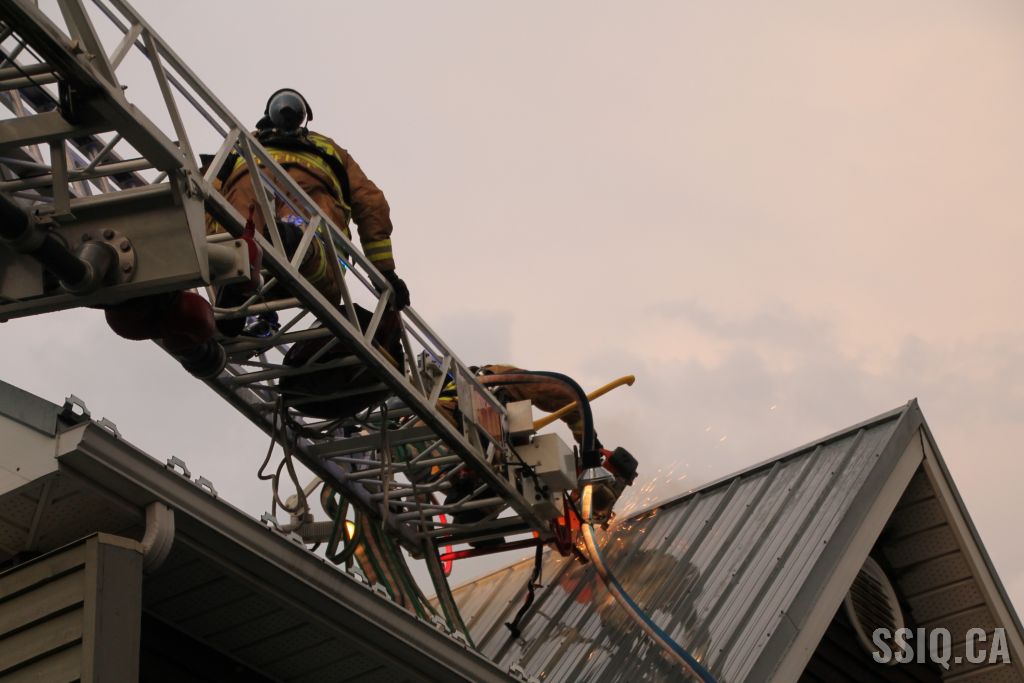 Les flammes sont rapidement rabattues et les dommages sont limités au niveau de la toiture.