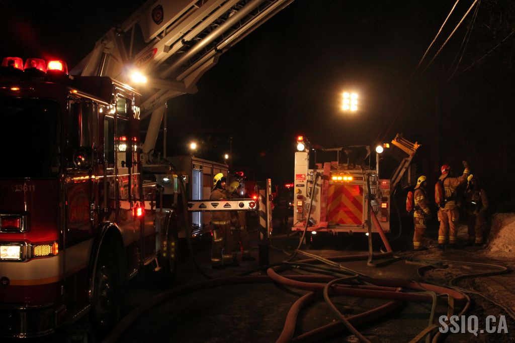 L'appel entre au 911 d'un résident, il fait mention que le feu est pris dans le toit de la résidence.