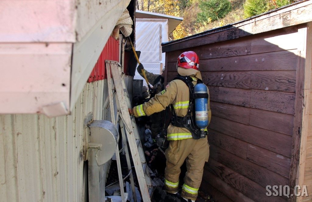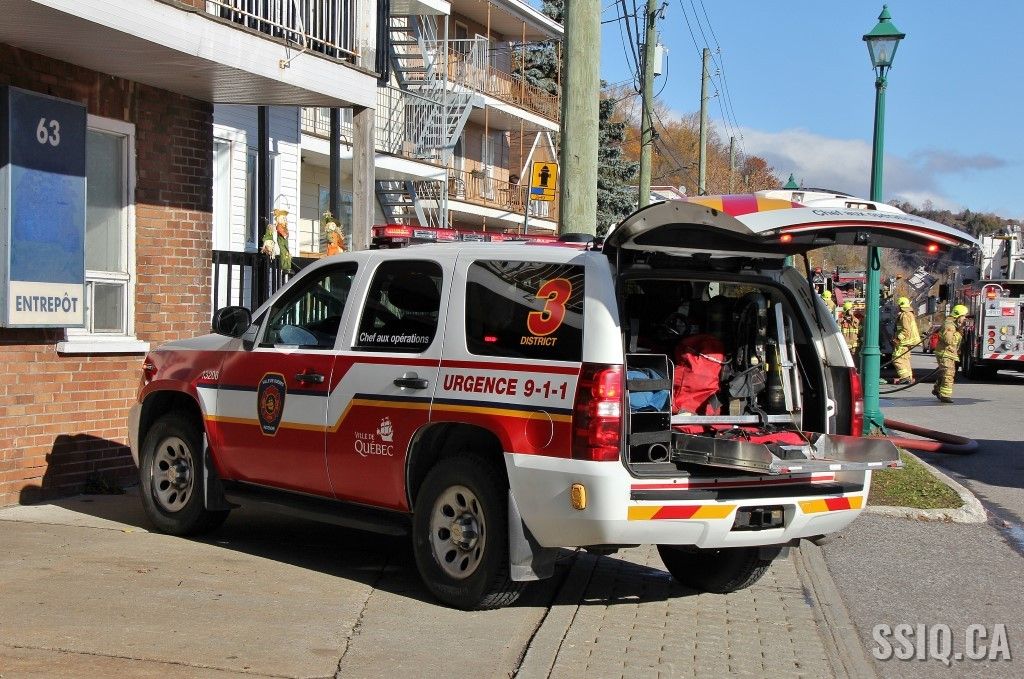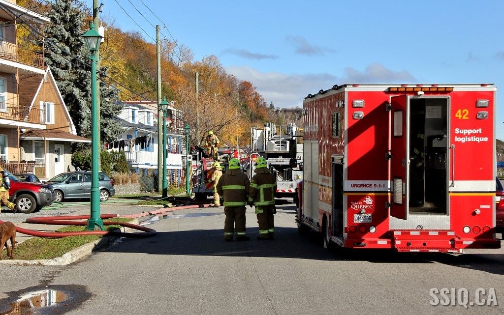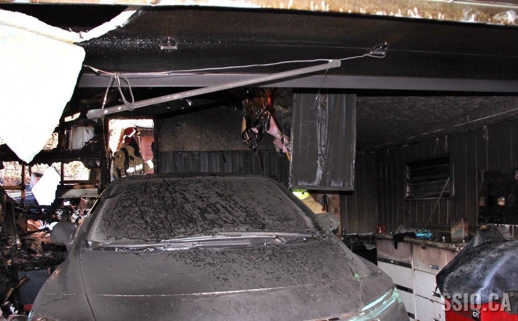 À l'arrivée de la caserne # 7, les flammes sortent par l'arrière du garage. Plusieurs jets sont mis en opération et les flammes sont rabattues assez rapidement sans propagation à d'autres structures.