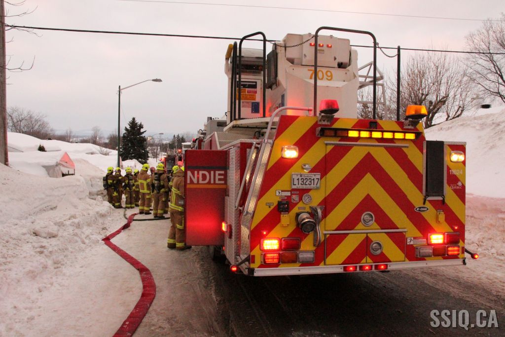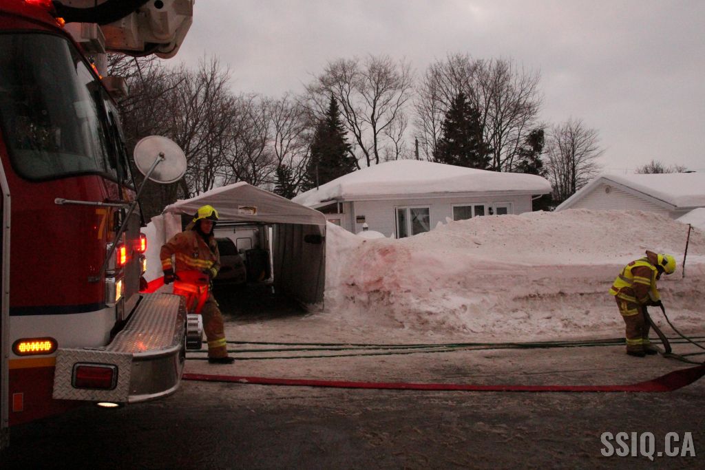L'appel provient d'un voisin, il mentionne qu'une odeur de brûlé et de la fumée s'échappe de la maison. Étant donné la hauteur du banc de neige, le plaignant ne peut pas voir s'il y a des flammes.