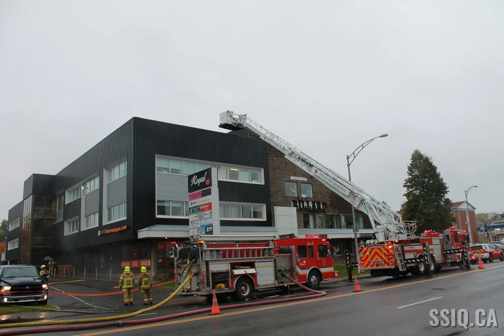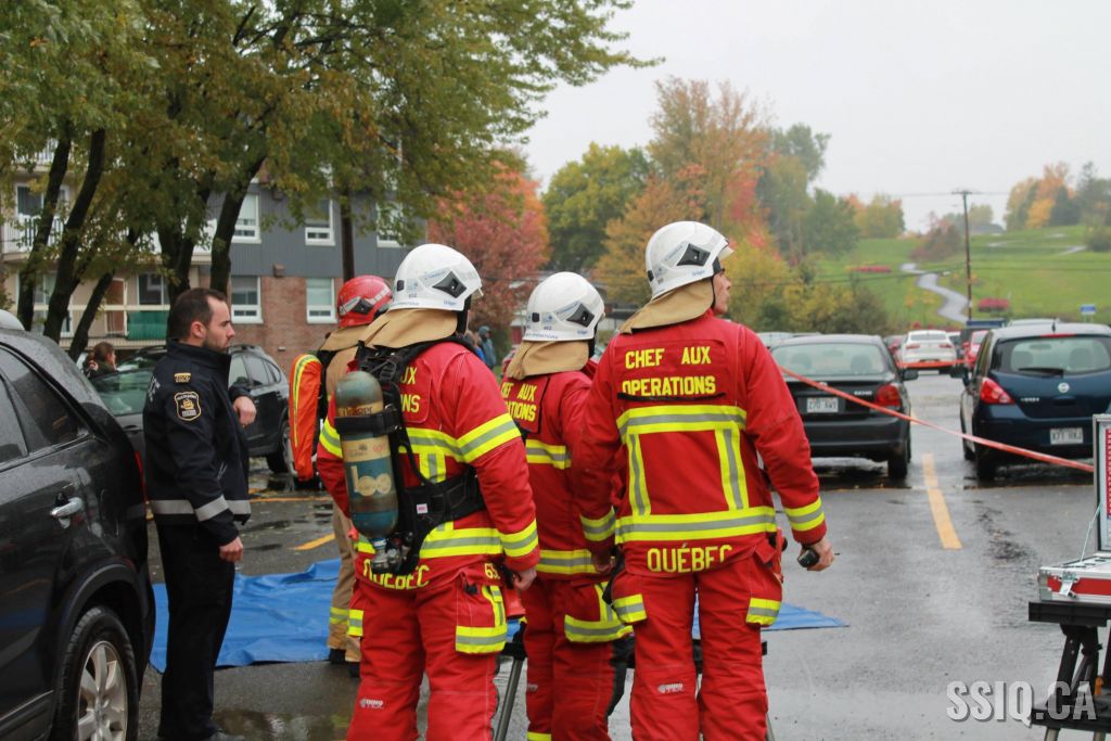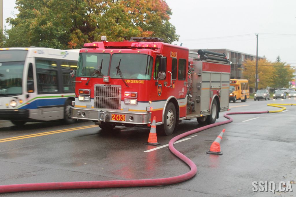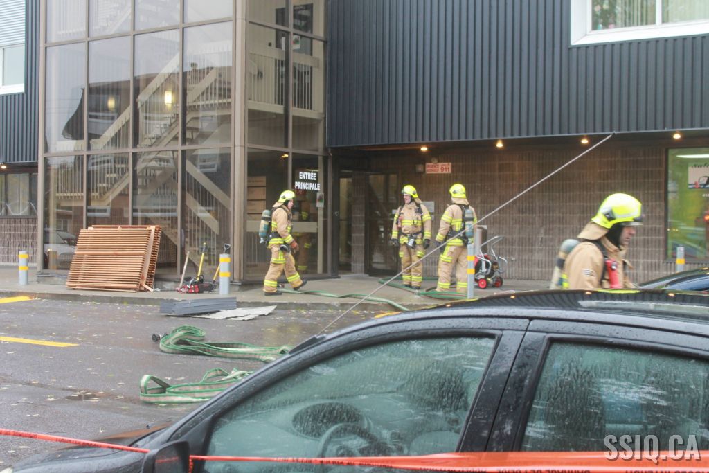 L'appel est d'abord entré pour une alarme incendie, par la suite une personne sur les lieux confirme qu'il a présence de fumée dans le corridor, alors la 1ère alarme est complétée.