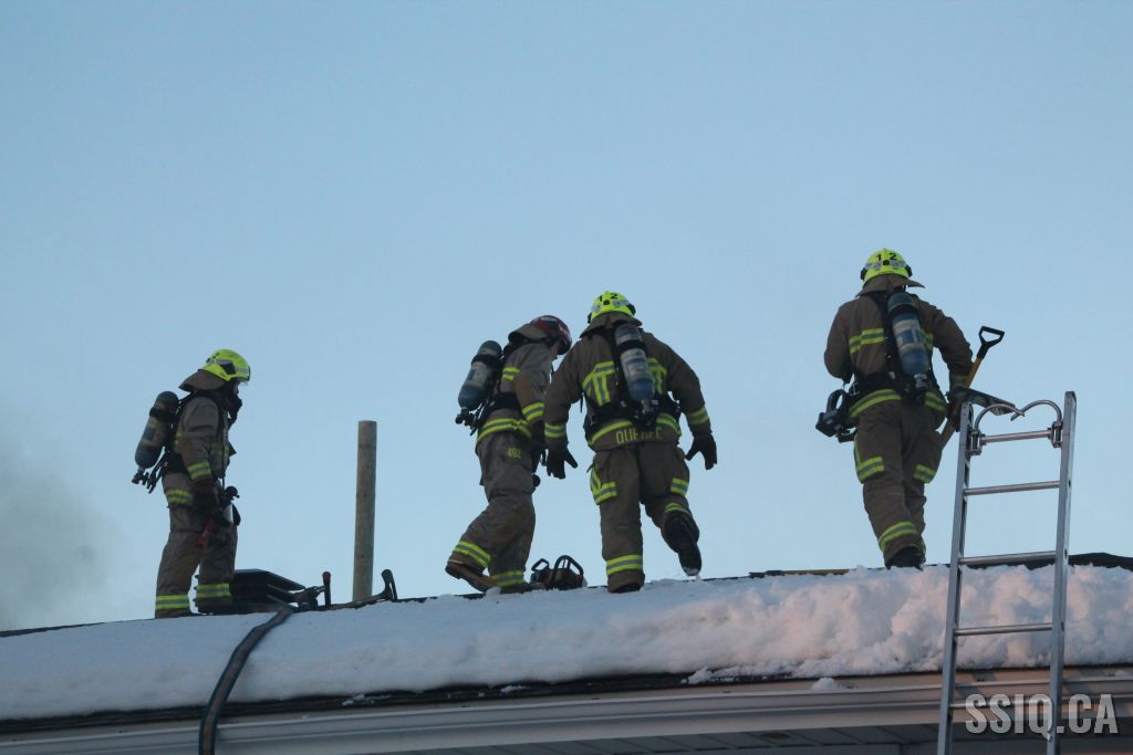 Les équipes rabattent rapidement les flammes alors que d'autres vérifient la propagation à l'intérieur de la résidence. Celle-ci a d'ailleurs subi de lourds dommages.